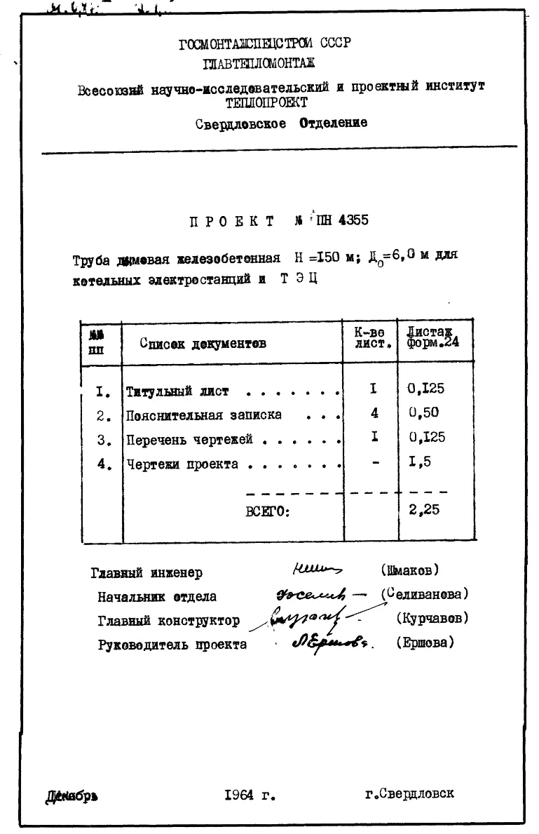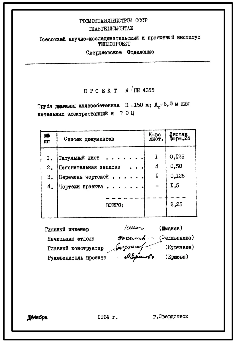 проект 4355 труба дымовая железобетонная н=150м; до=6,0м, для котельных электростанций и тэц.