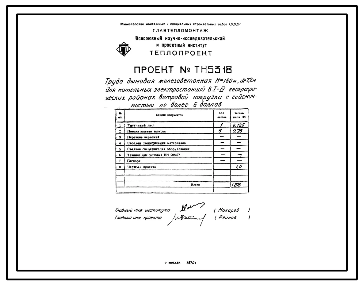 проект 5318 труба дымовая железобетонная н=180 м, до=7,2 м для котельных электростанций.
