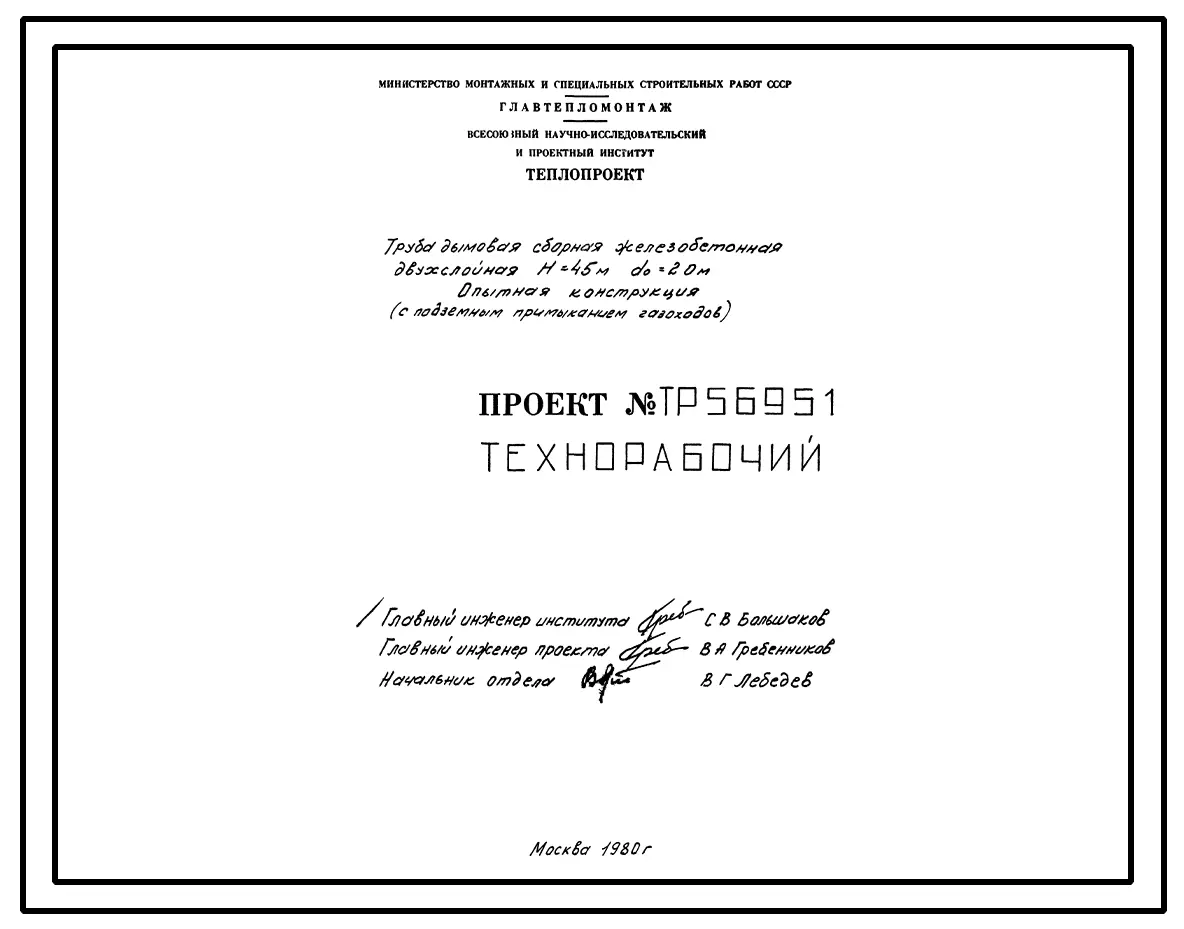 проект 56951 труба дымовая сборная железобетонная двухслойная н=45 м до=2,0 м.