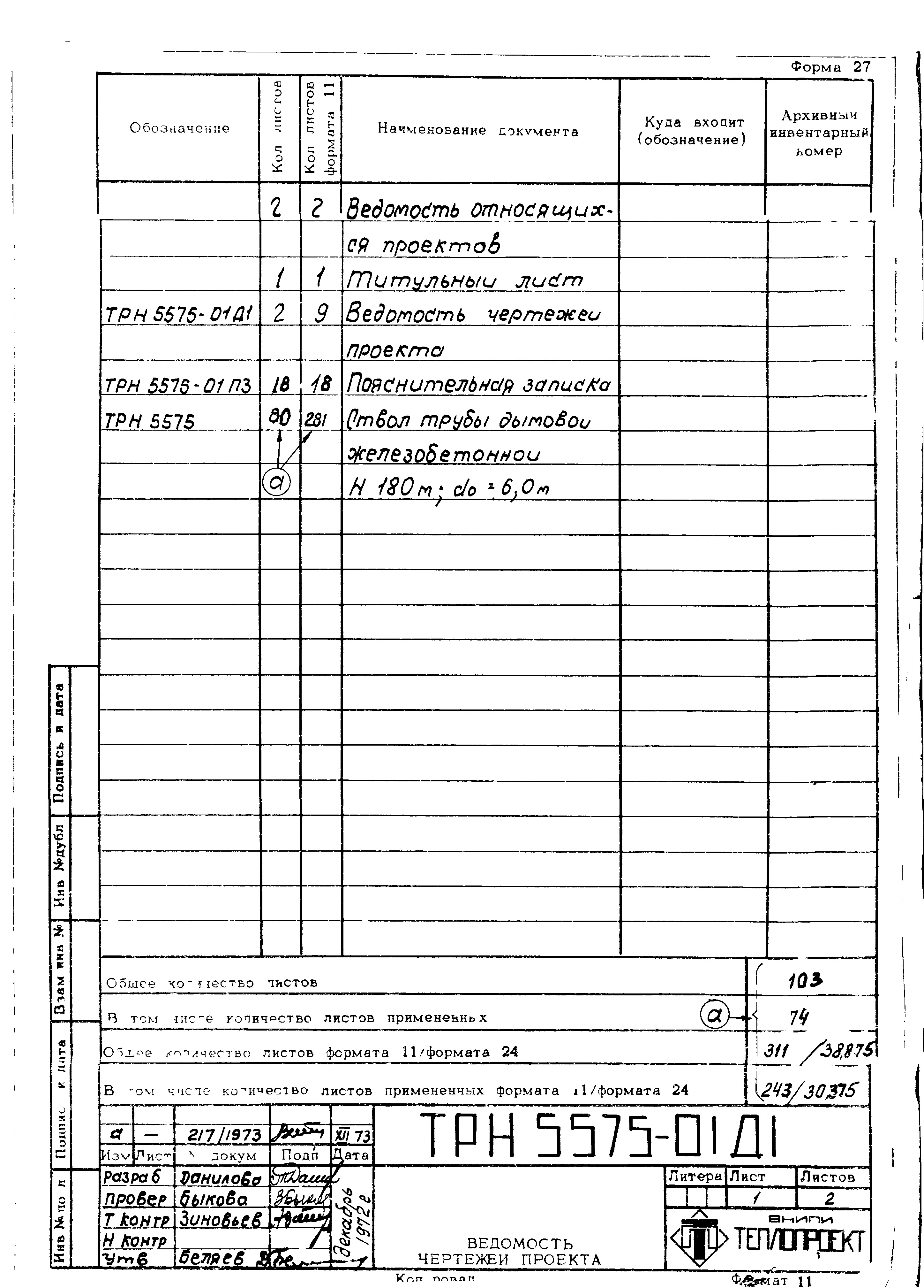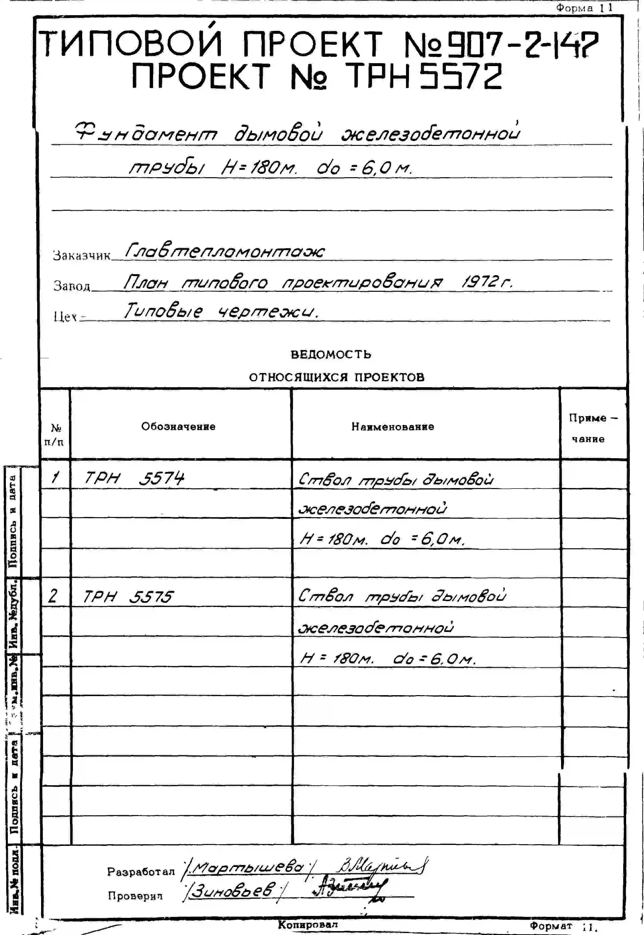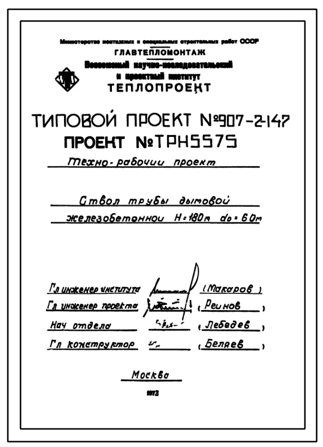 типовой проект 907-2-147 труба дымовая железобетонная н = 180 м; д0 = 6,0 м. для тэц и грэс.