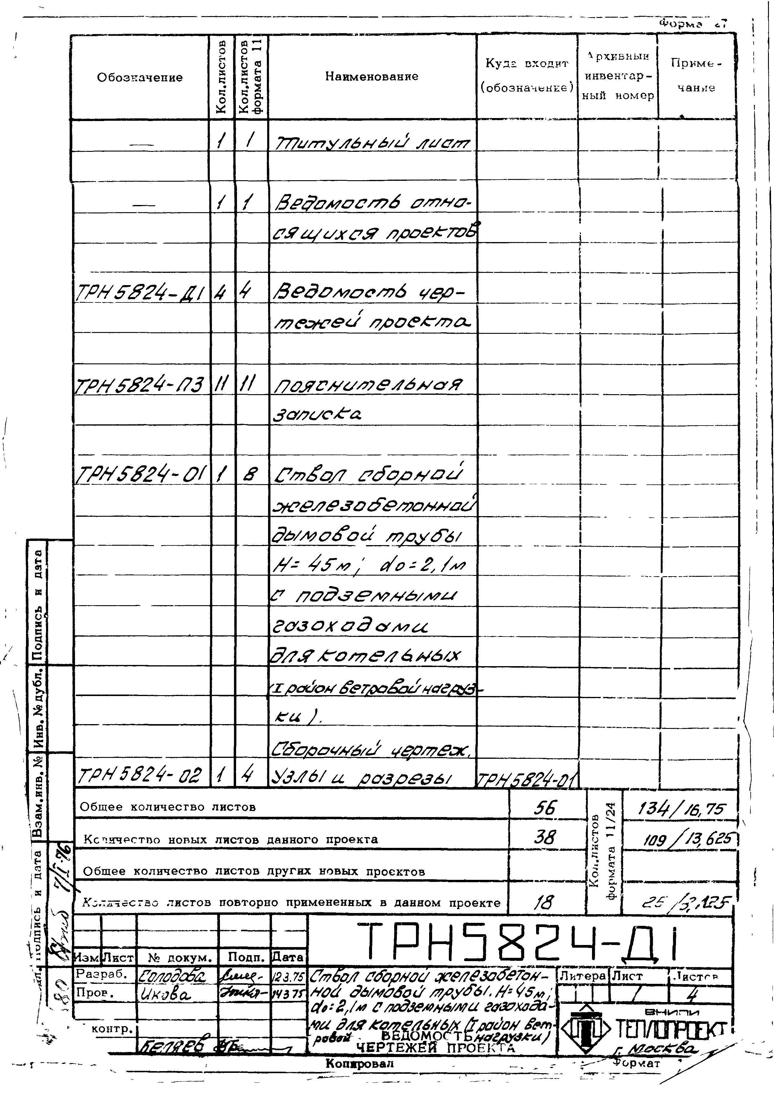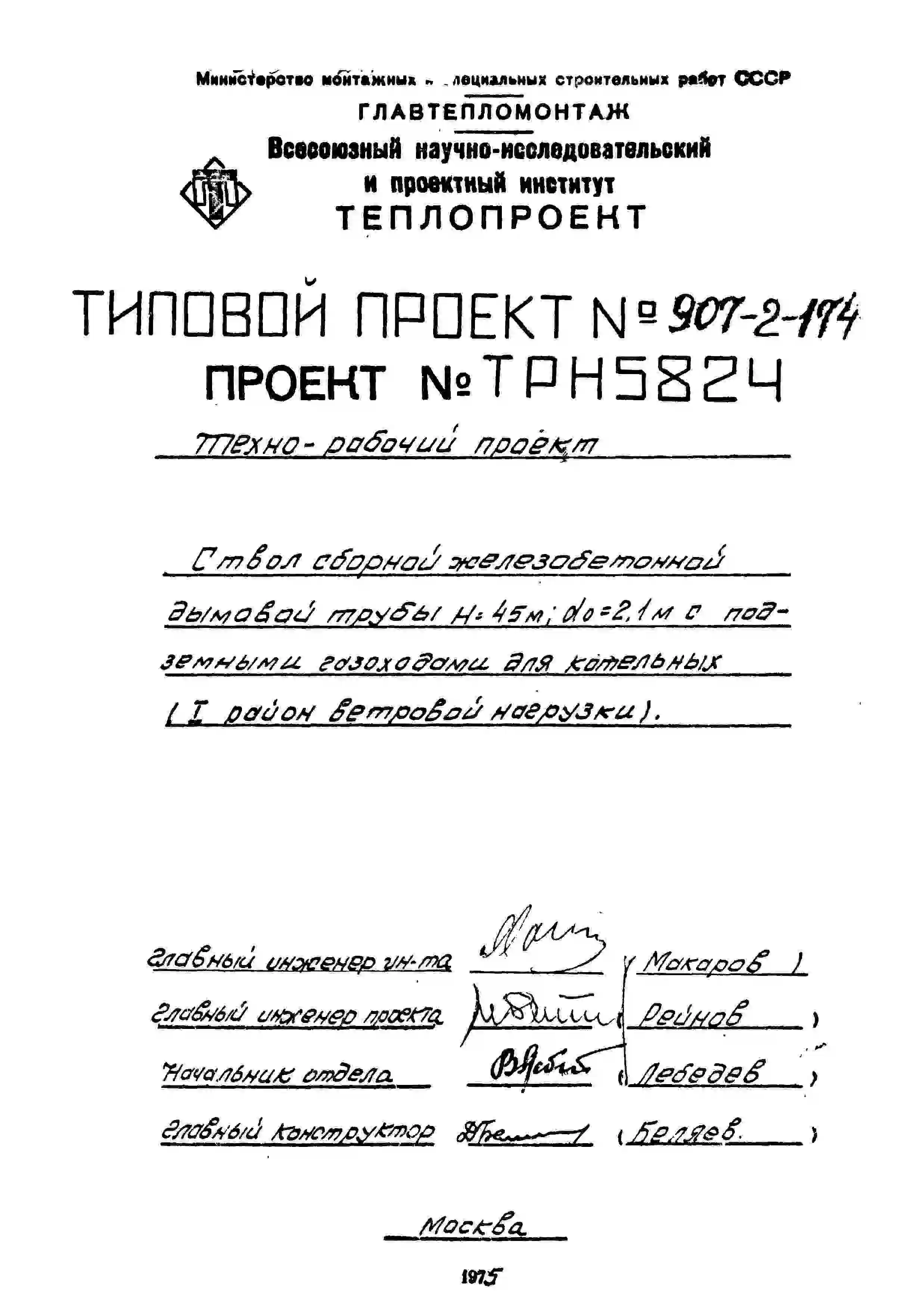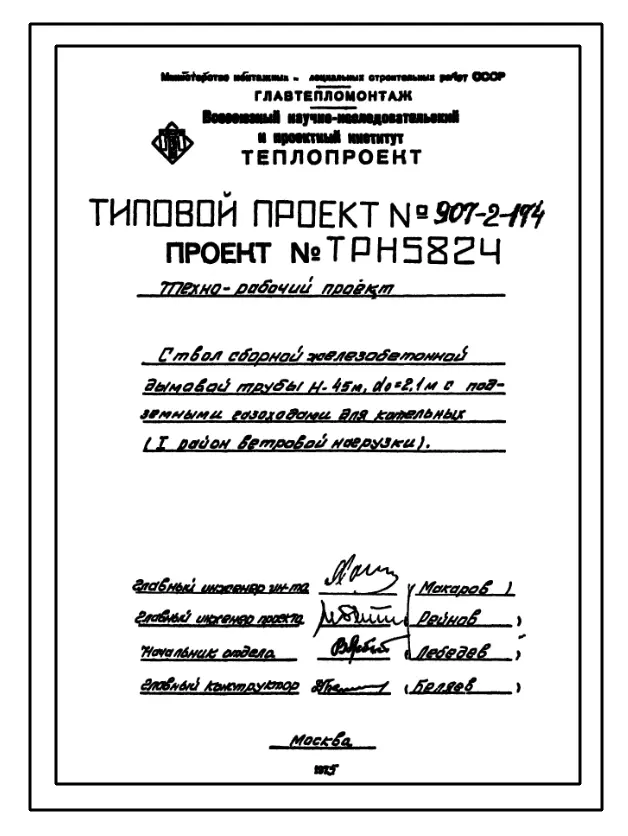 типовой проект 907-2-174 труба дымовая сборная железобетонная н=45 м, до=2,1 м с подземными газоходами для котельных.