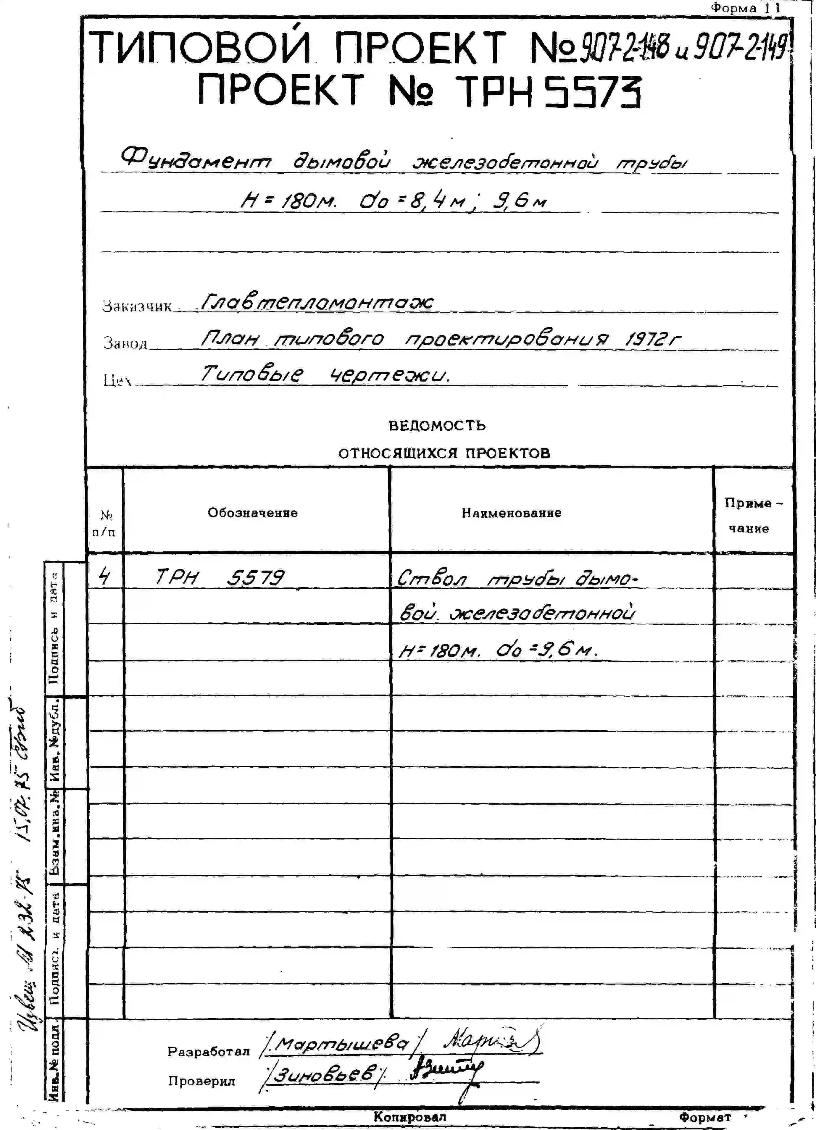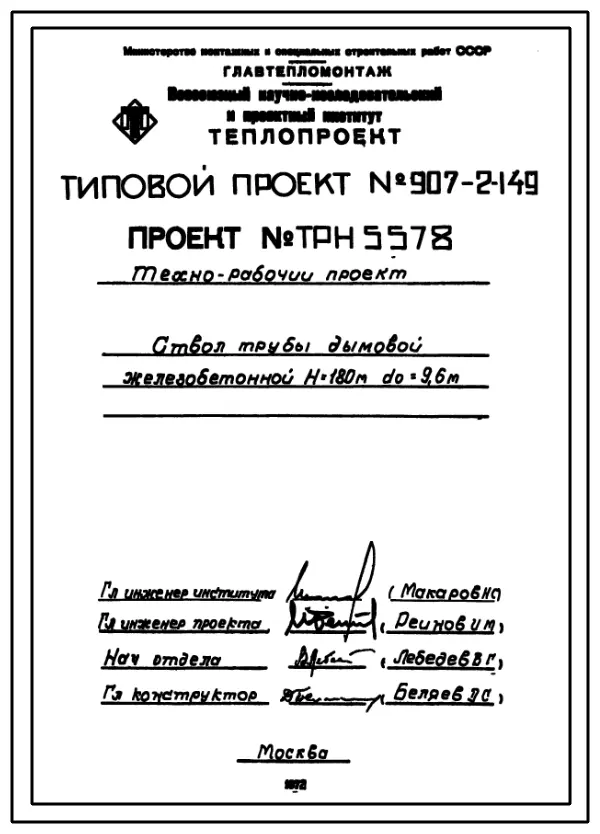 типовой проект 907-2-149 труба дымовая железобетонная н=180 м, до=9,6 м для тэц и грэс.