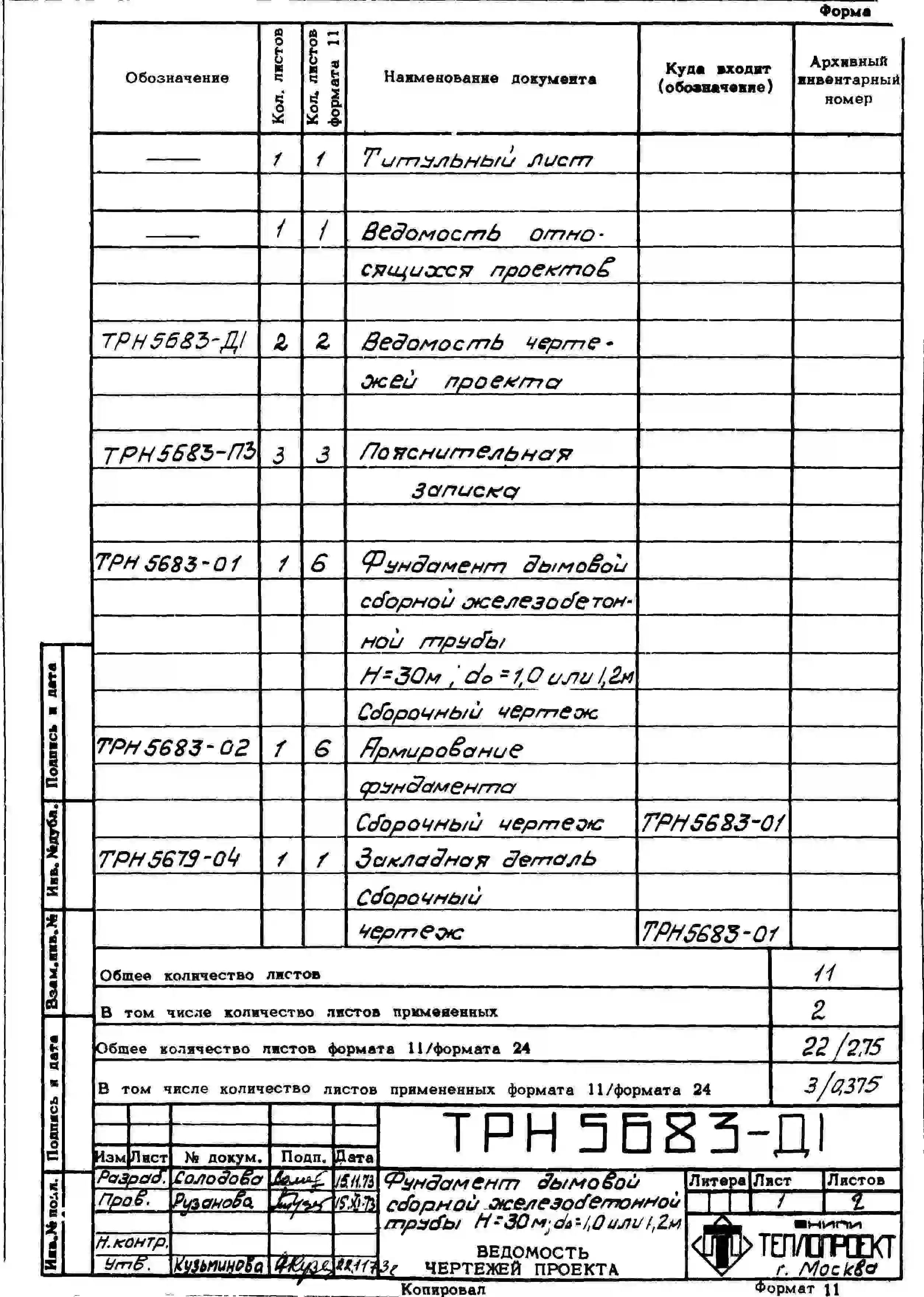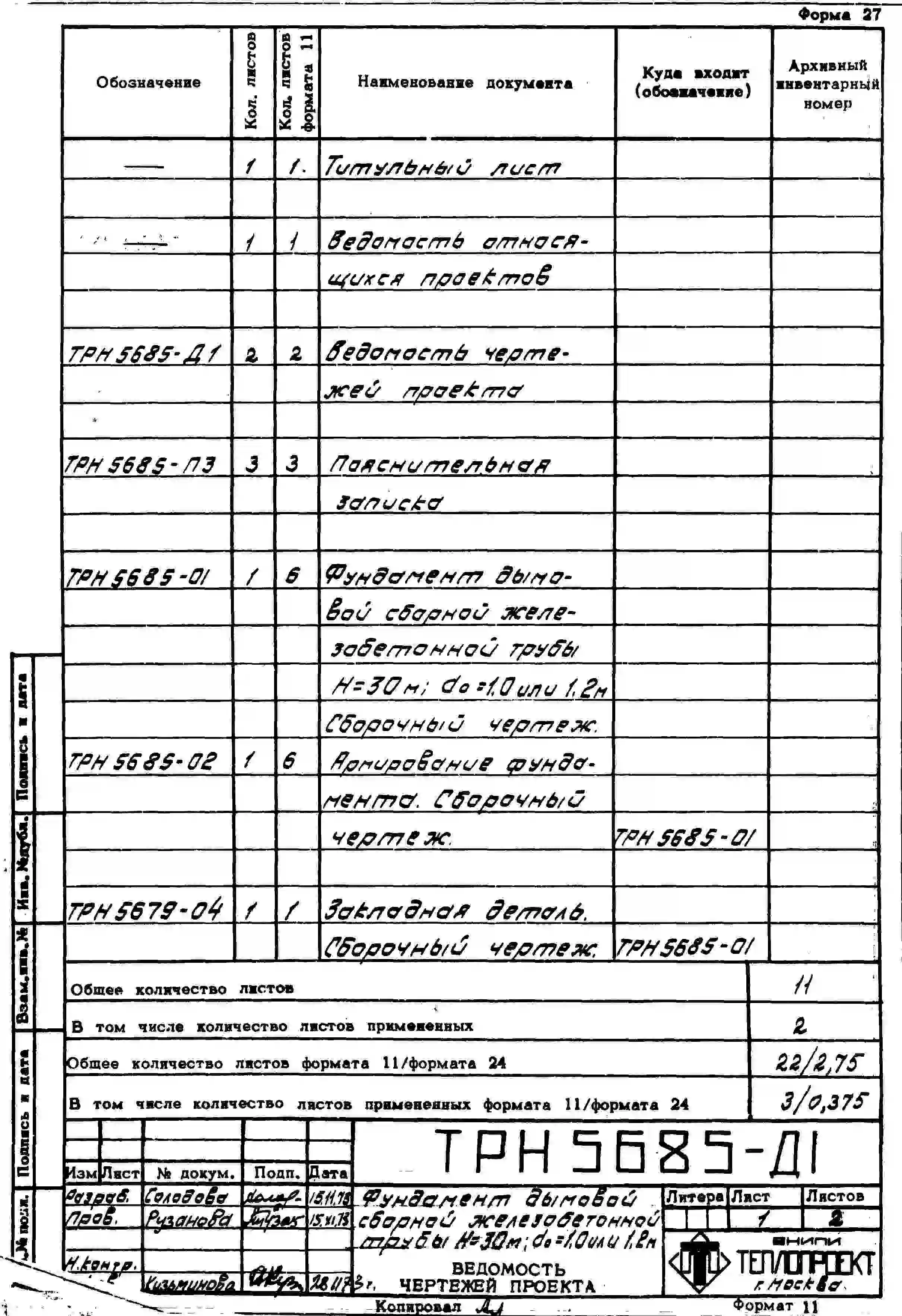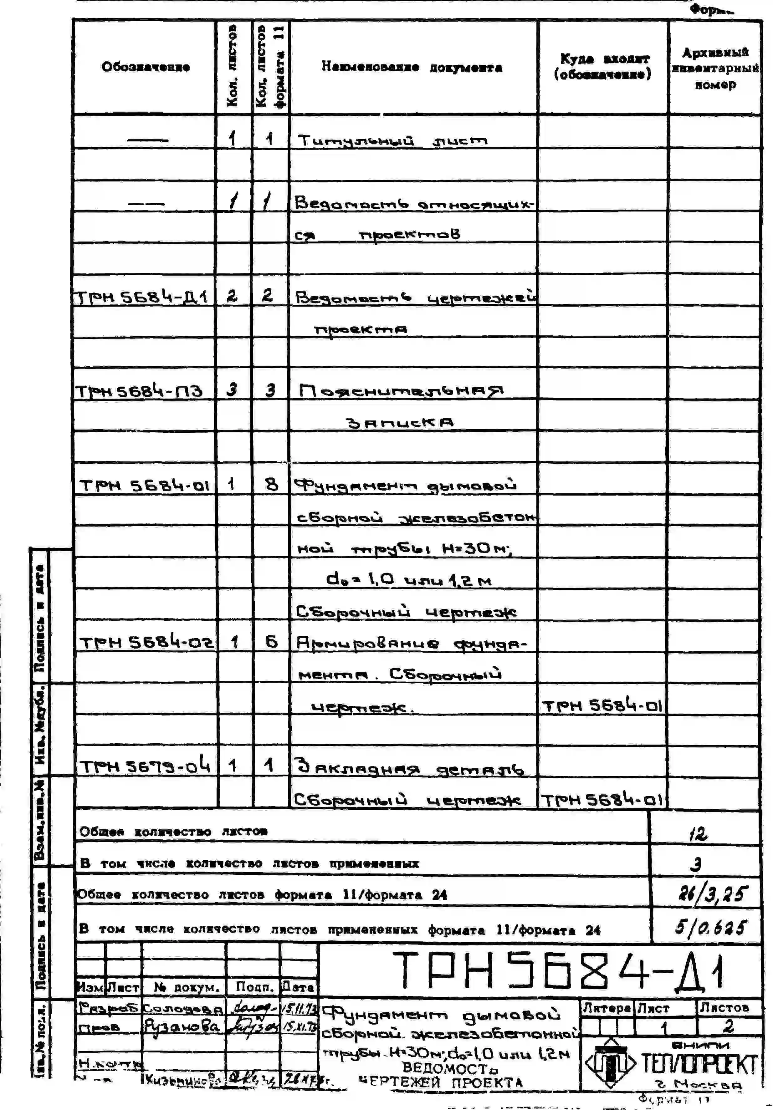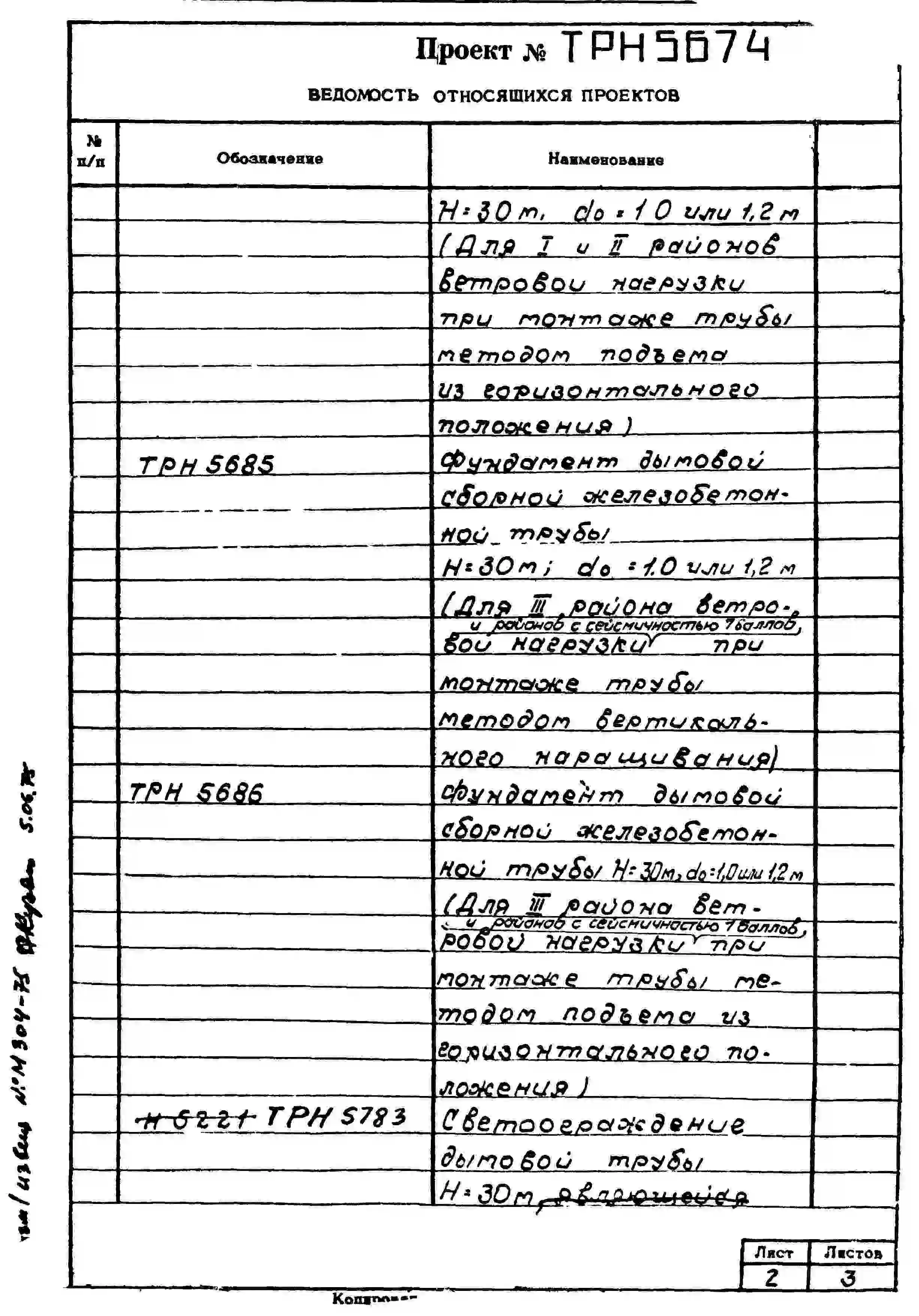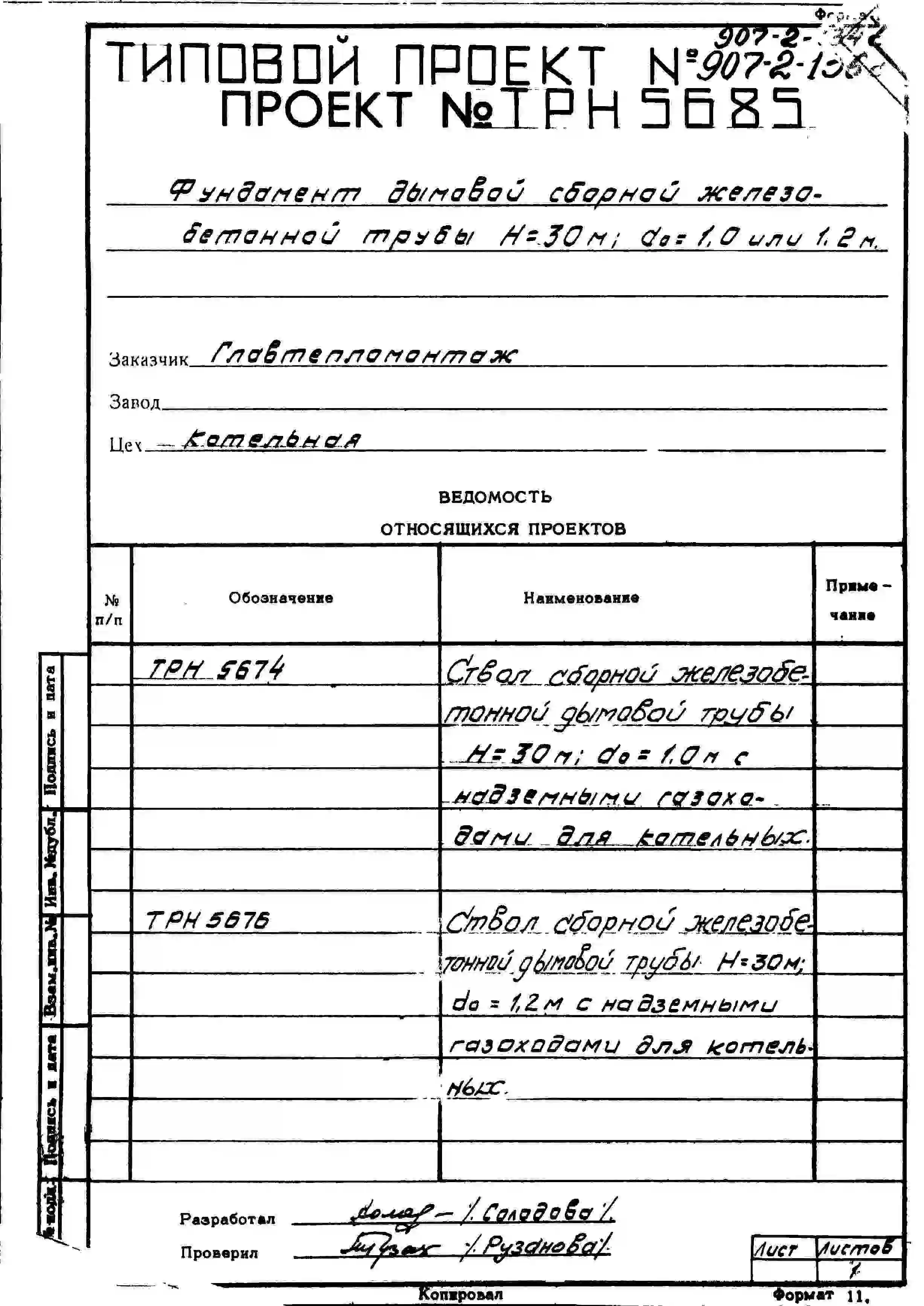 типовой проект 907-2-134с труба дымовая сборная железобетонная н=30 м, до=1,0 м с надземными газоходами для котельных.