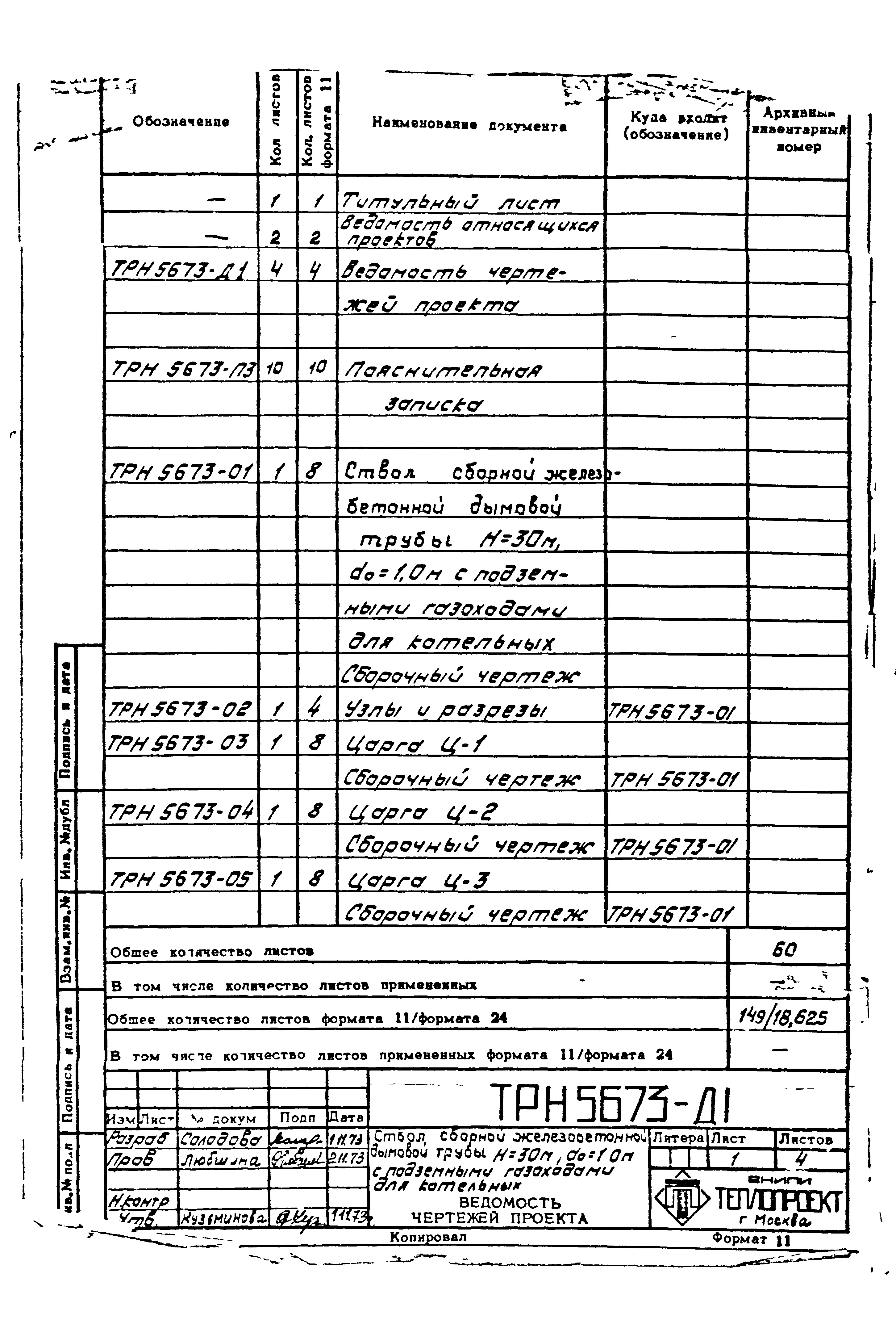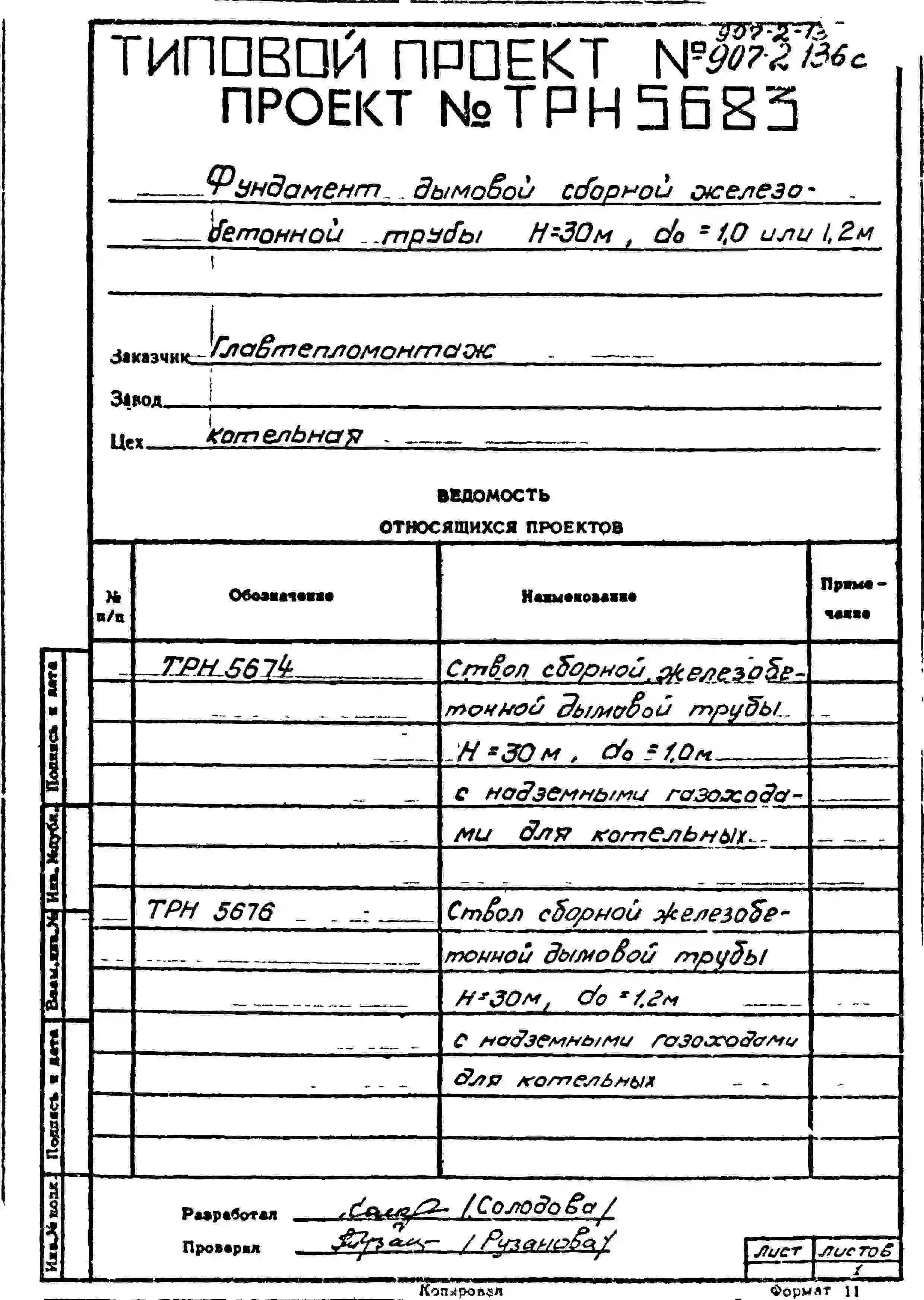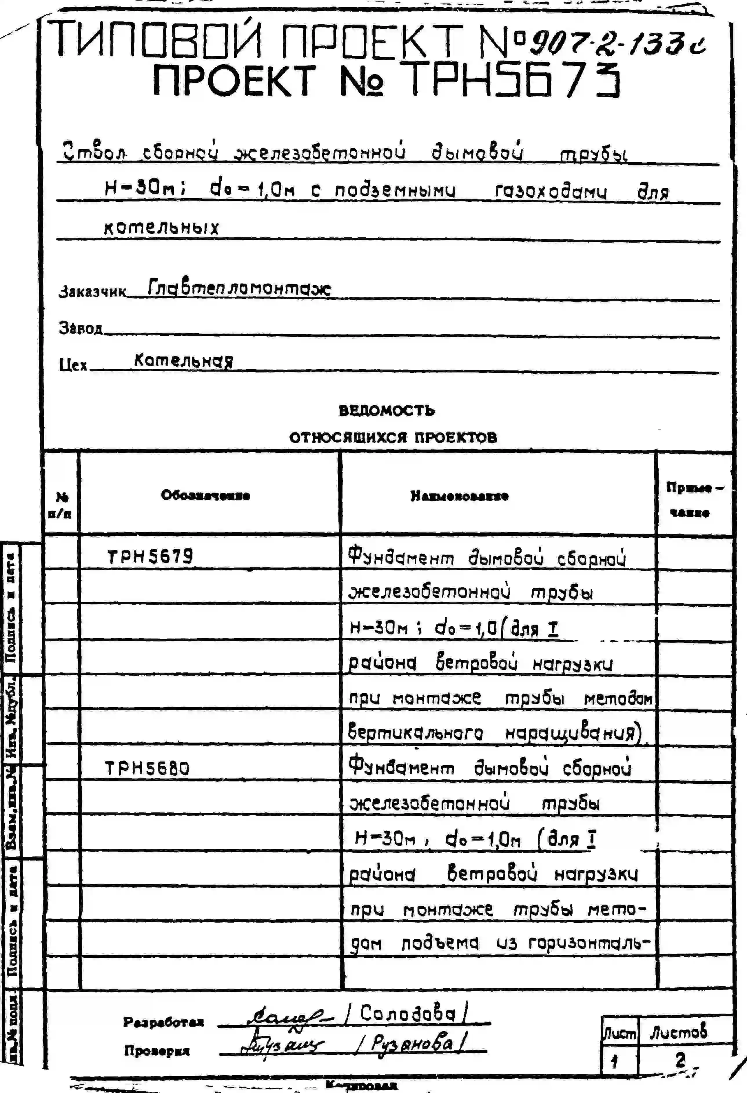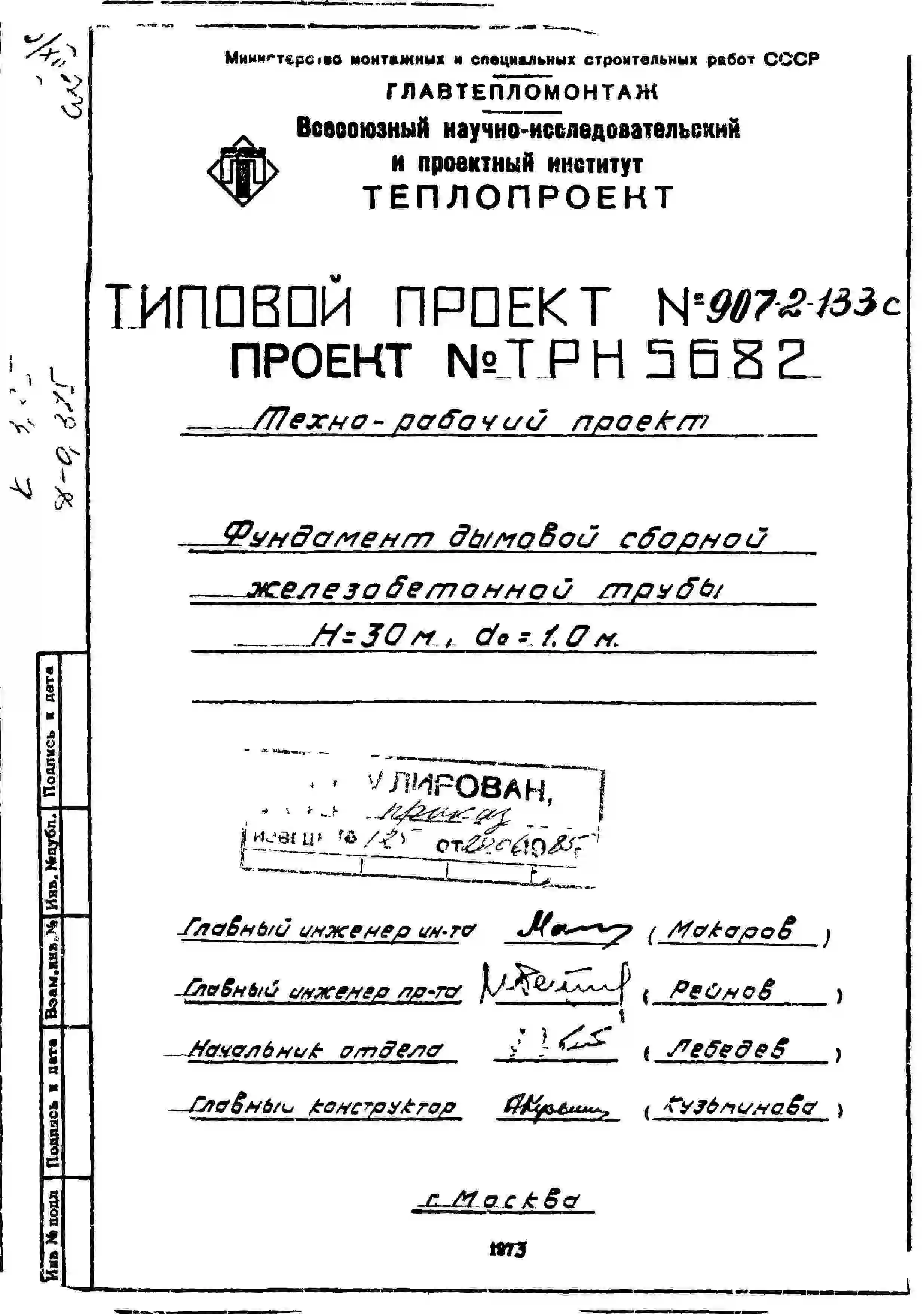 типовой проект 907-2-133с труба дымовая сборная железобетонная н=30 м, до=1,0 м с подземными газоходами для котельных.