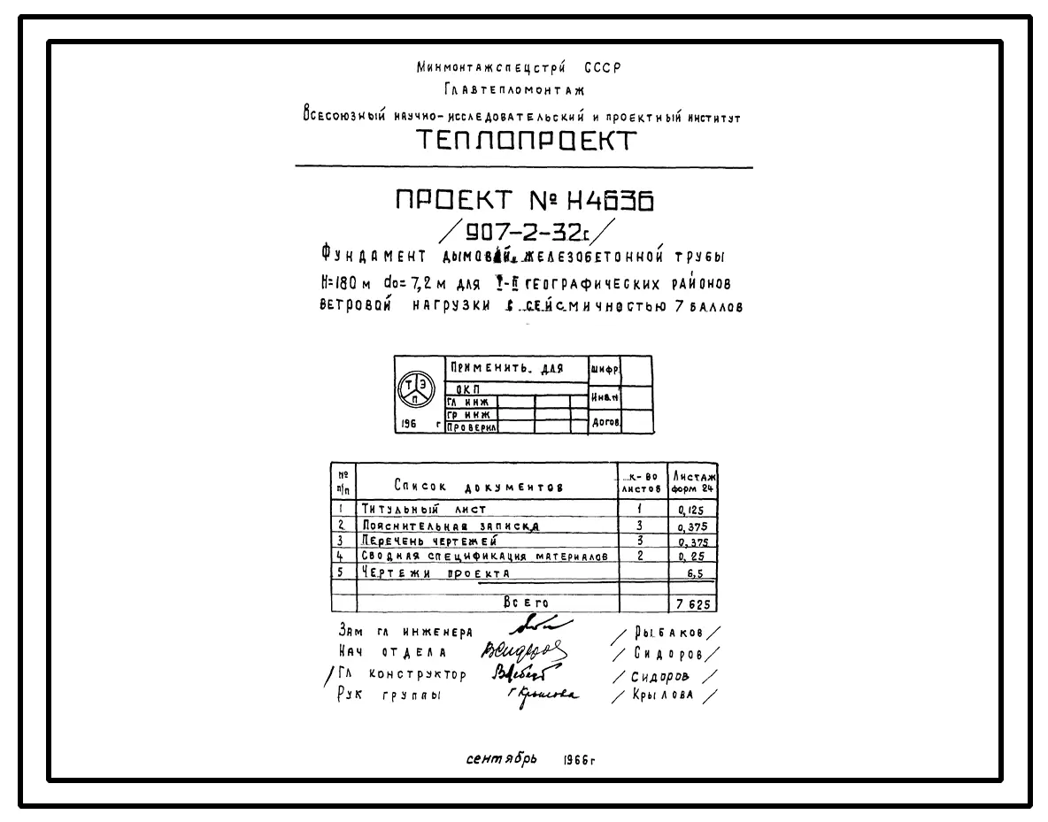 типовой проект 907-2-32с труба дымовая железобетонная н=180 м, до=7,2 м для котельных электростанций.