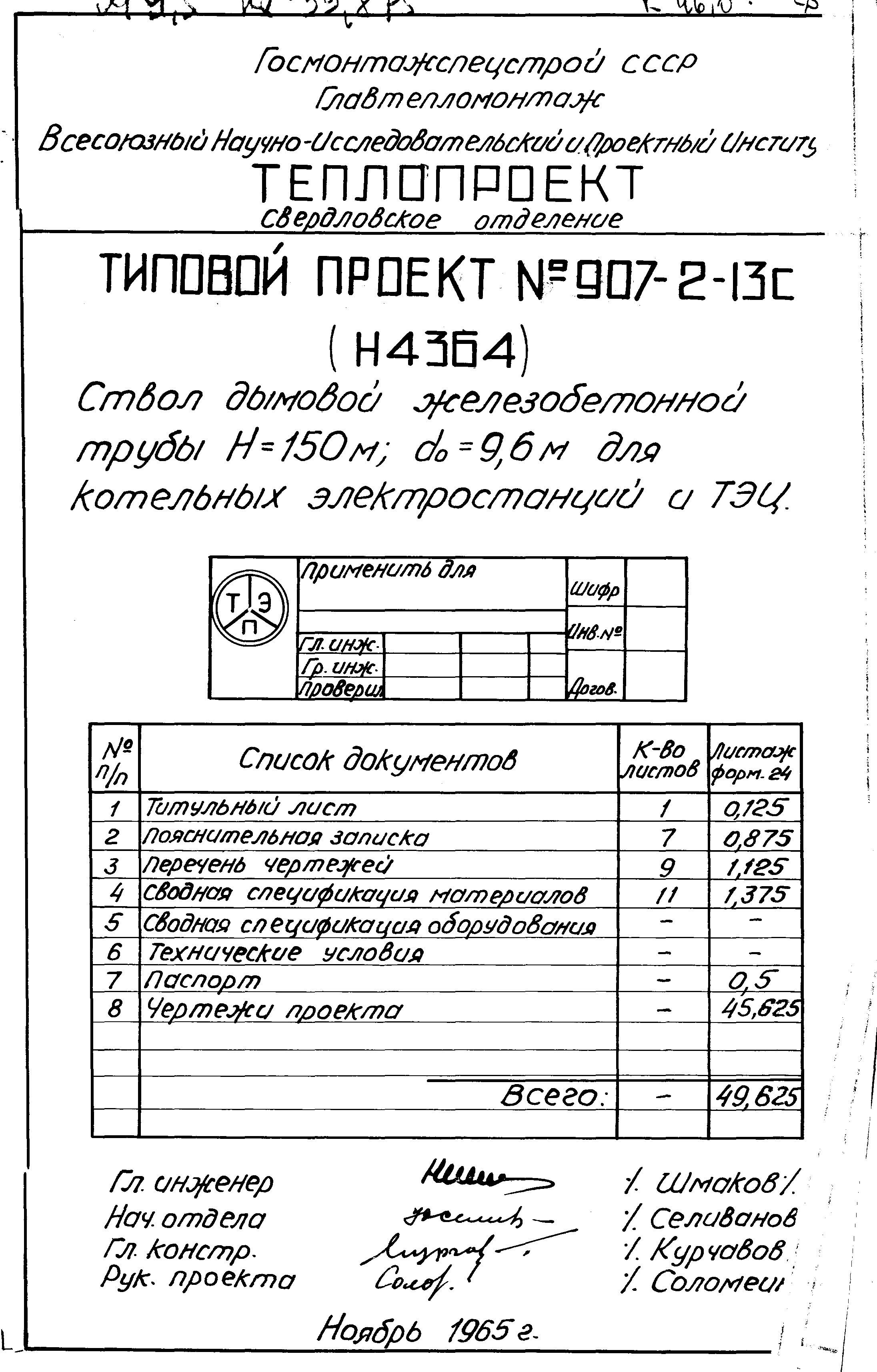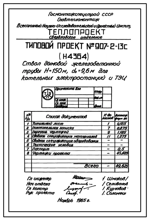 типовой проект 907-2-13с труба дымовая железобетонная н=150 м, до=9,6 м для котельных электростанций и тэц.