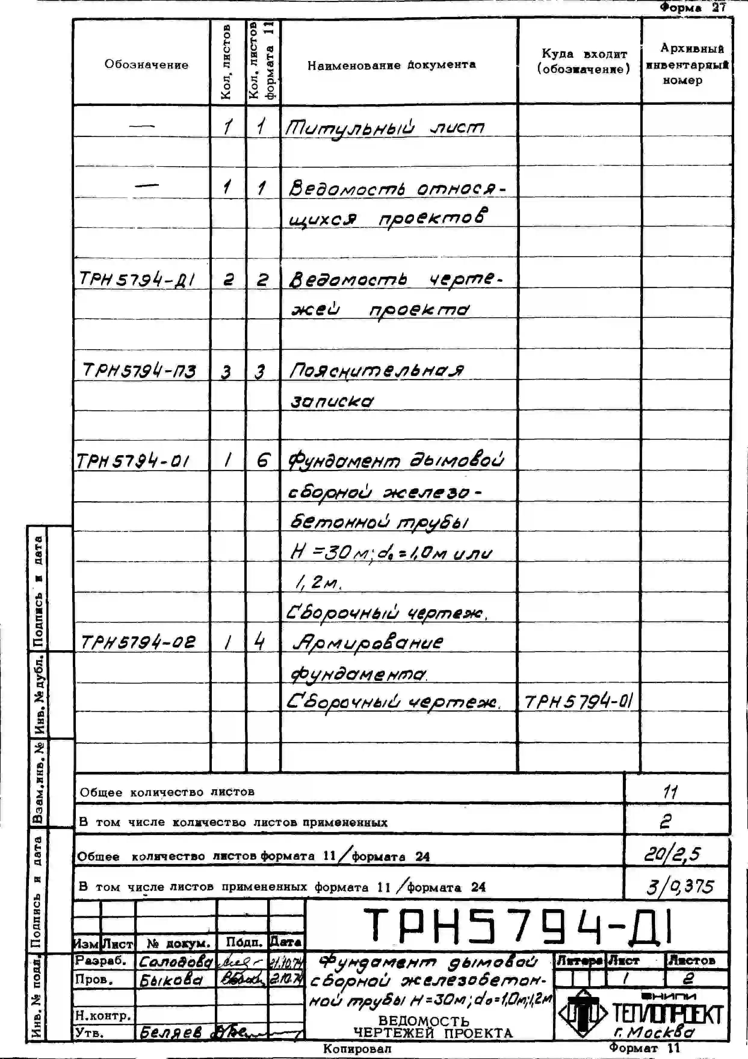 типовой проект 907-2-167с труба дымовая сборная железобетонная для котельных установок н-30 м, д0-1,2 м с наземными газоходами.
