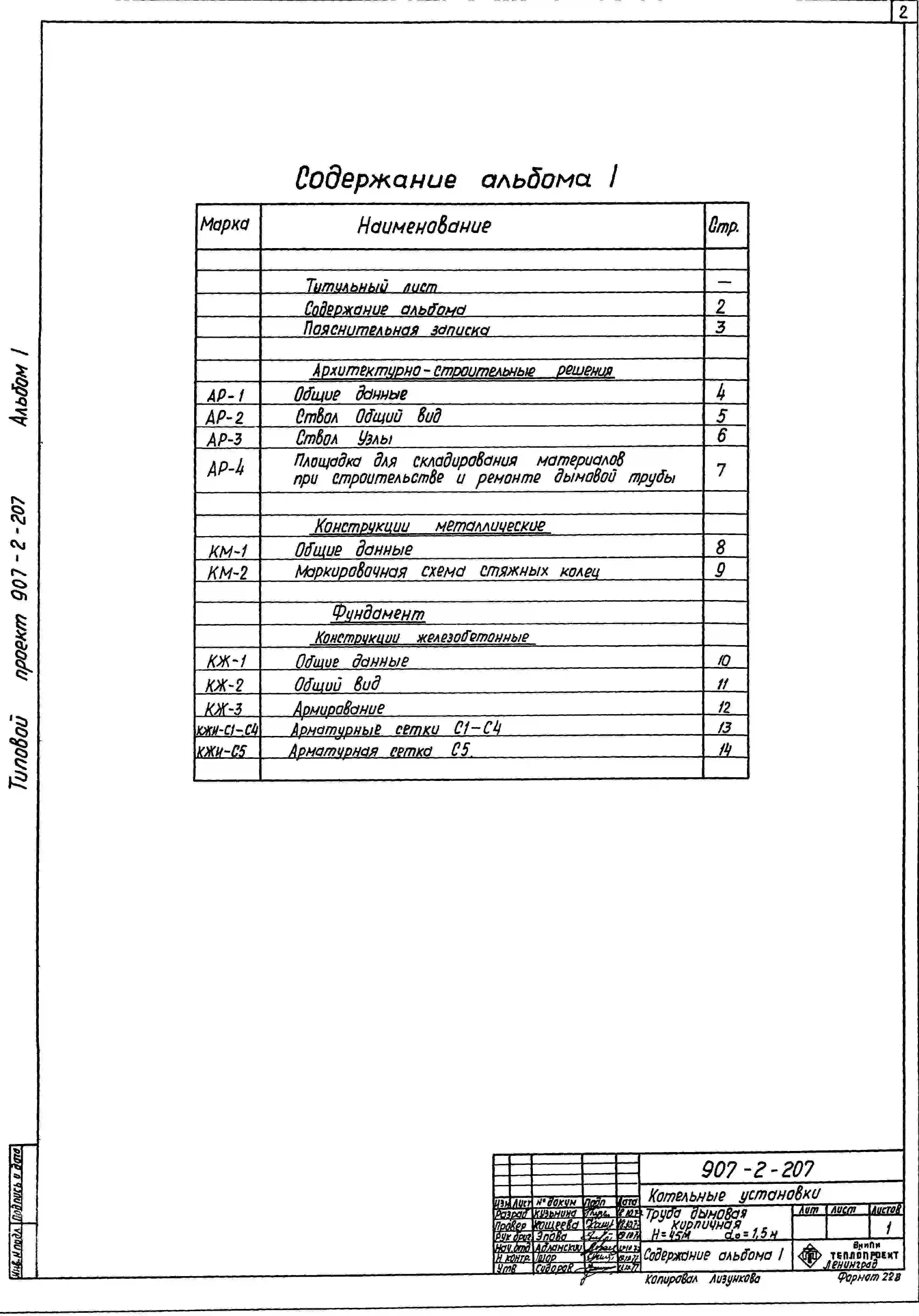 типовой проект 907-2-207 труба дымовая кирпичная н=45 м, д0=1,5 м с подземным примыканием газоходов для котельных установок. для строительства в 1-4 климатических районов кроме подрайонов 1а и 1б.