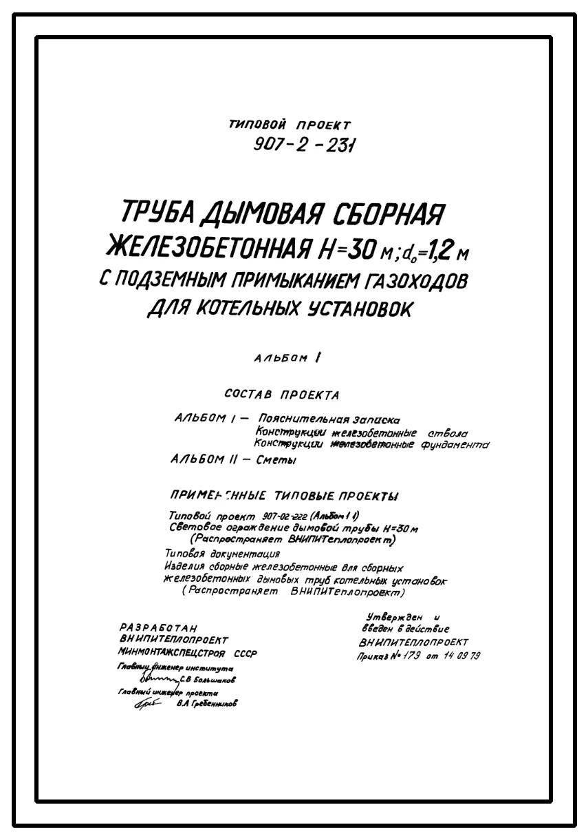 типовой проект 907-2-231 труба дымовая железобетонная сборная н=30м, д0=1,0 м с подземным примыканием газоходов для котельных установок. для 1-3 ветровых районов.