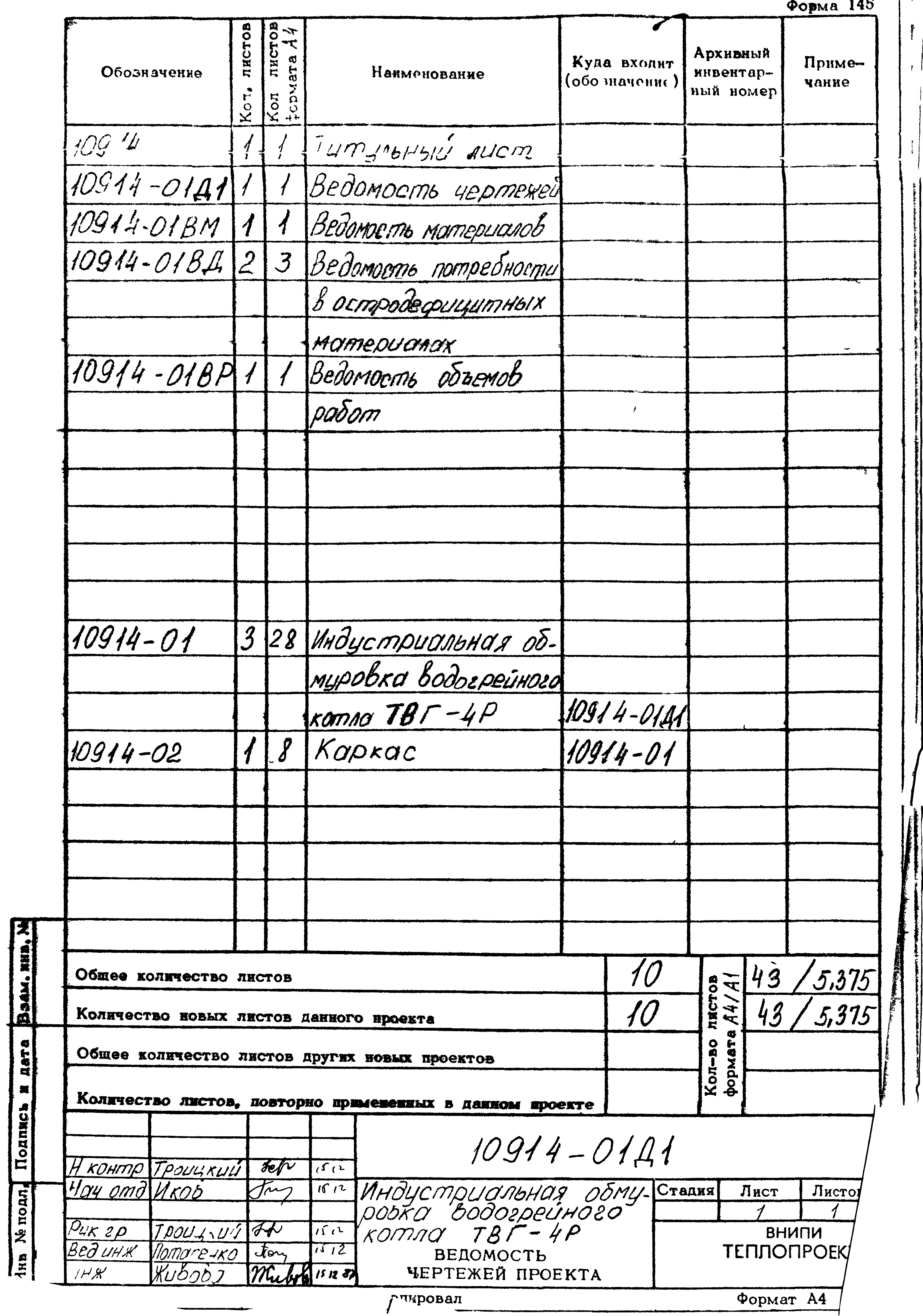 Проект 10914 Индустриальная обмуровка водогрейного котла ТВГ-4Р