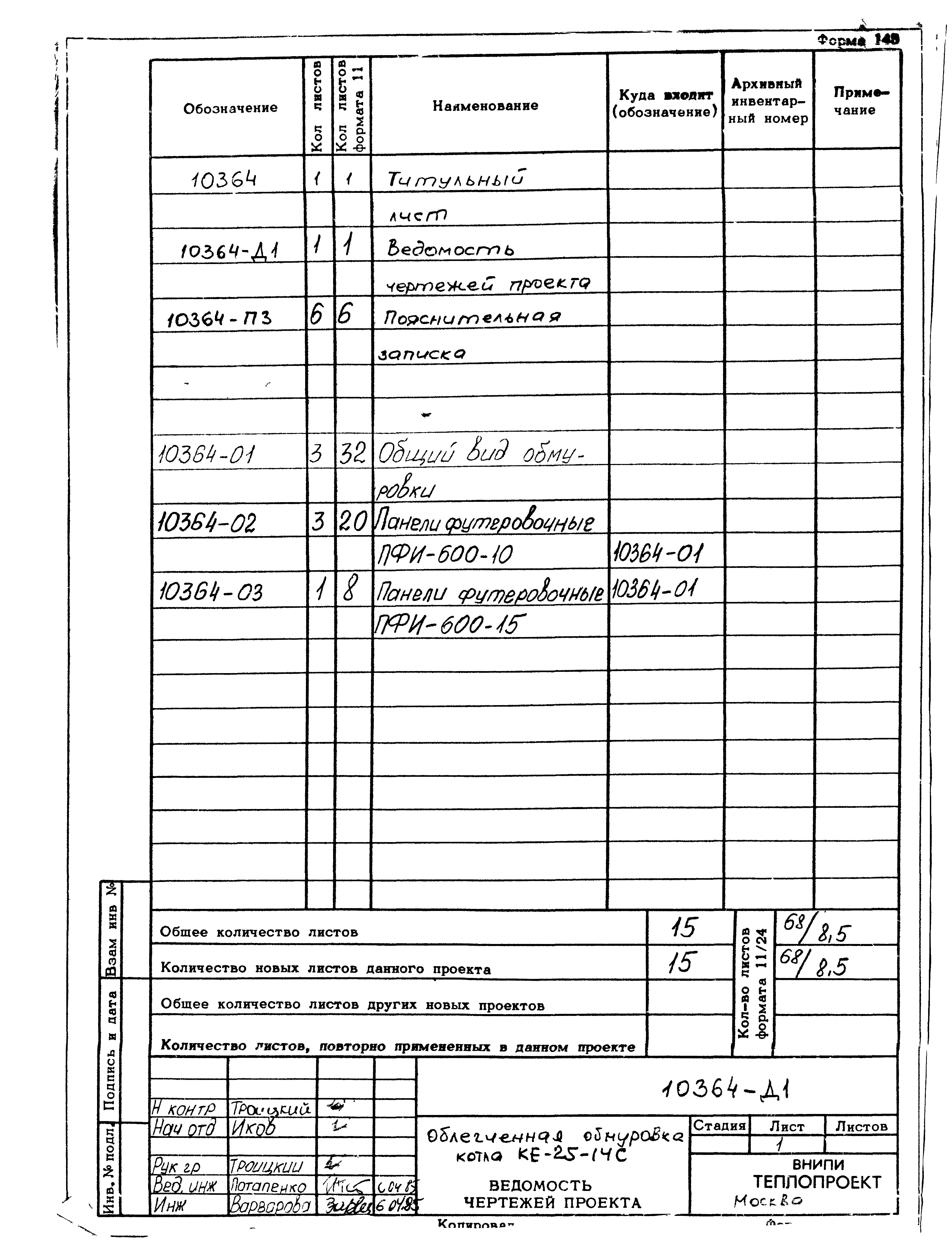 Проект 10364 Облегченная обмуровка котла КЕ-25-14С
