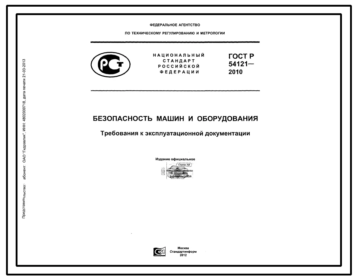 Шифр ГОСТ Р54121-2010 Безопасность машин и оборудования