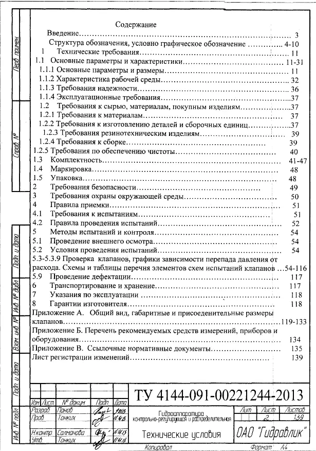 Шифр ТУ-4144-091-00221244-2013 Гидроаппаратура контрольно-регулирующая и распределительная