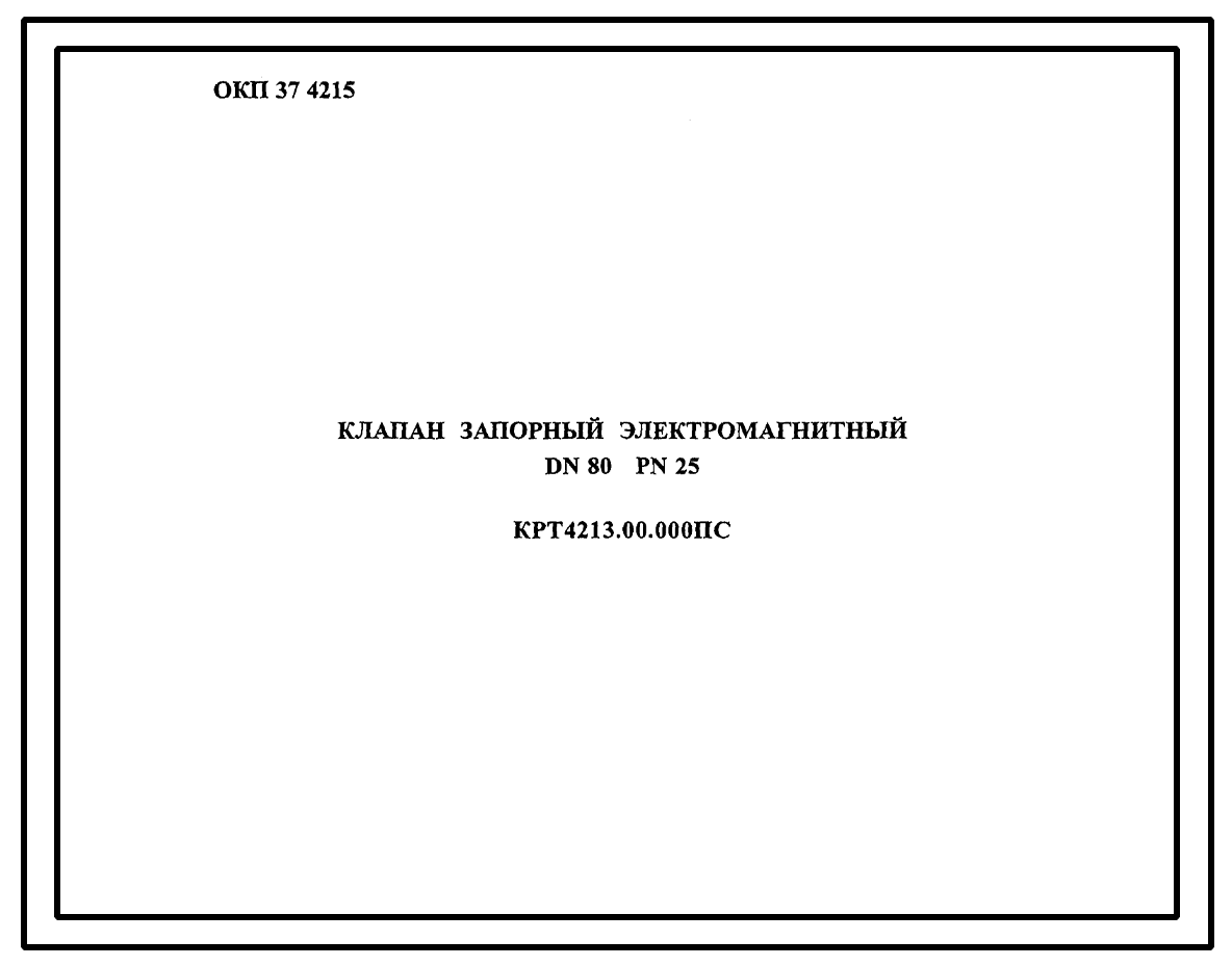 Шифр КРТ4213.00.000 Клапан запорный электромагнитный DN80 PN25