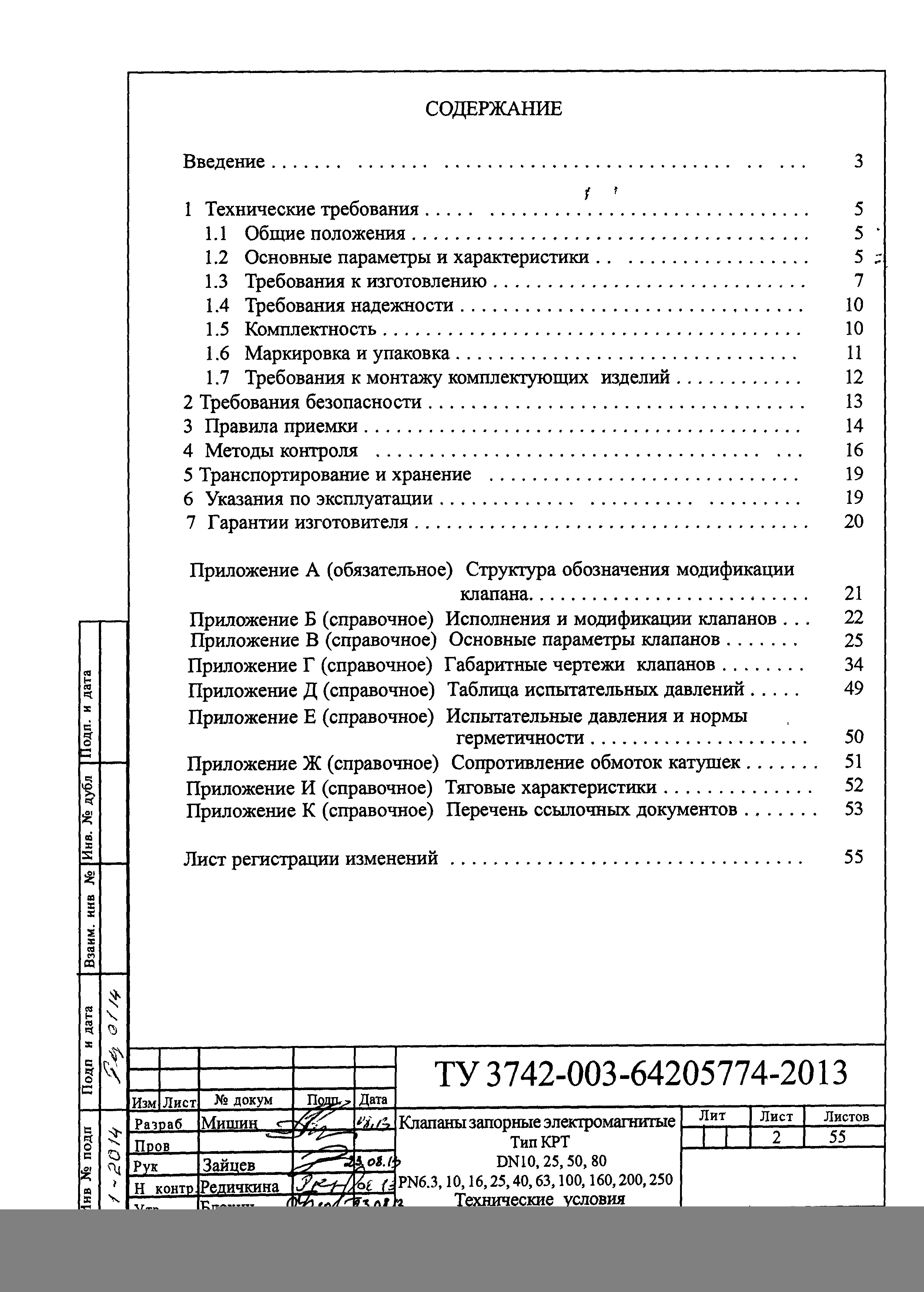 Шифр ТУ3742-003-64205774-2013 Клапаны запорные электромагнитные .(Технические условия).