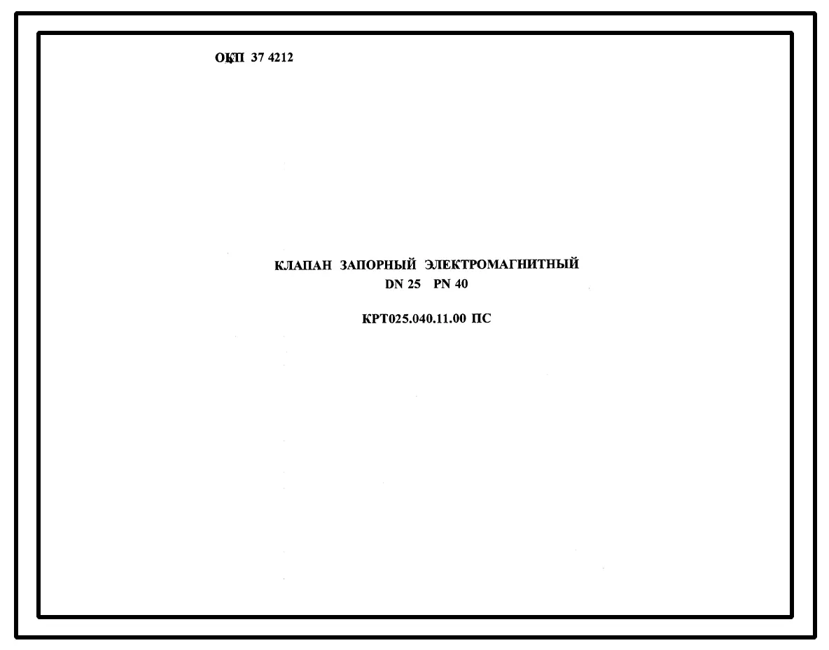 Шифр КРТ025.040.11.00 Клапан запорный электромагнитный DN25 PN40