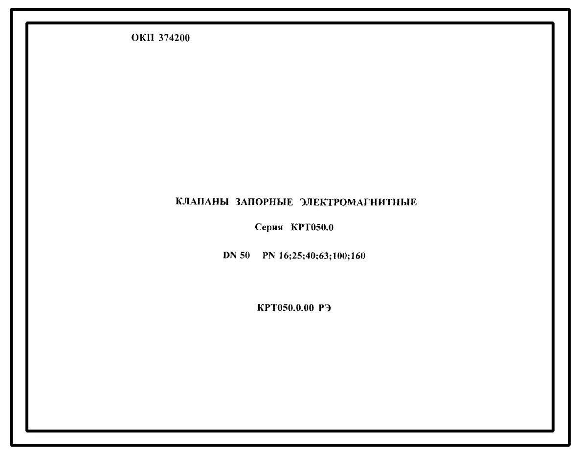 Шифр КРТ050.0.00РЭ Клапан запорный электромагнитный серия КРТ050.0