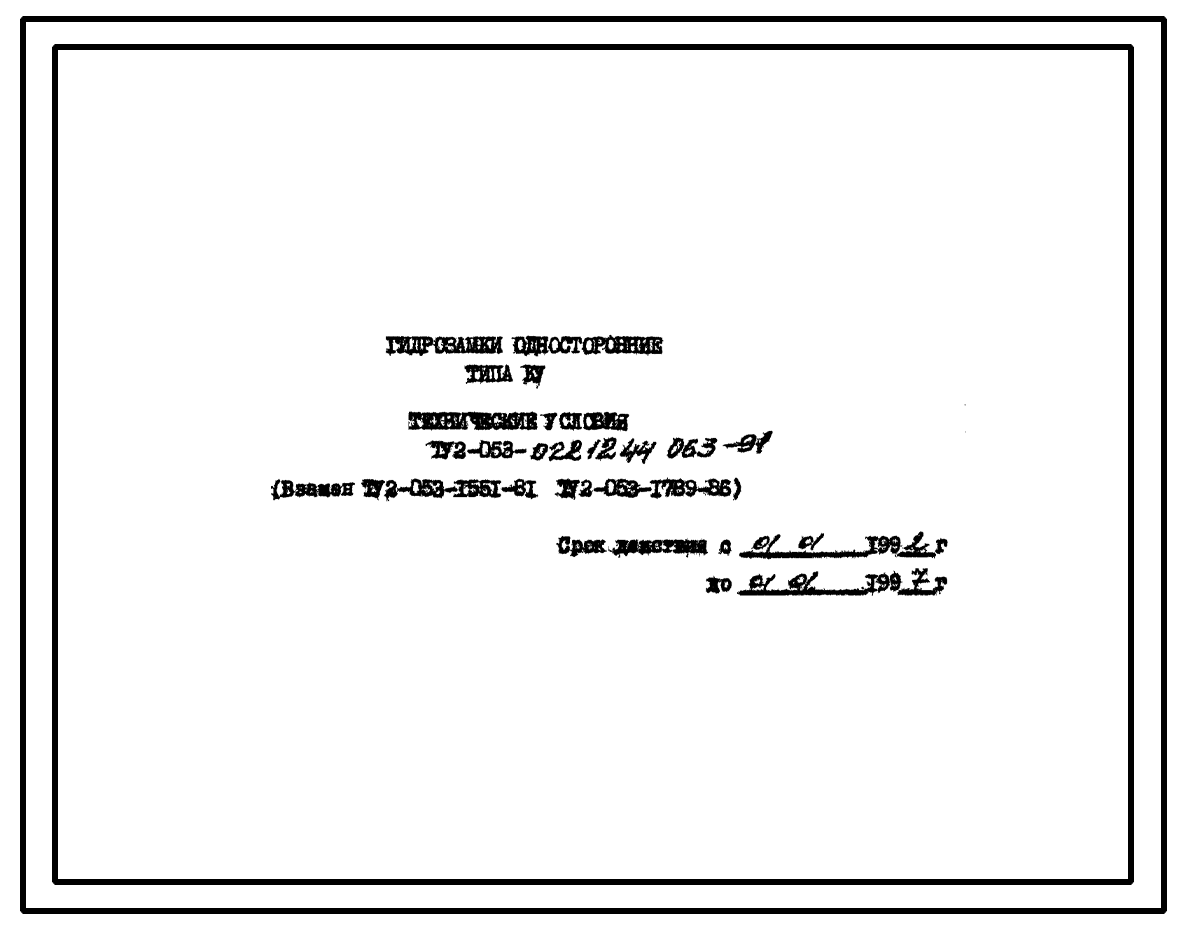 Шифр ТУ2-053-0221244.063-91 Гидрозамки односторонние типа КУ