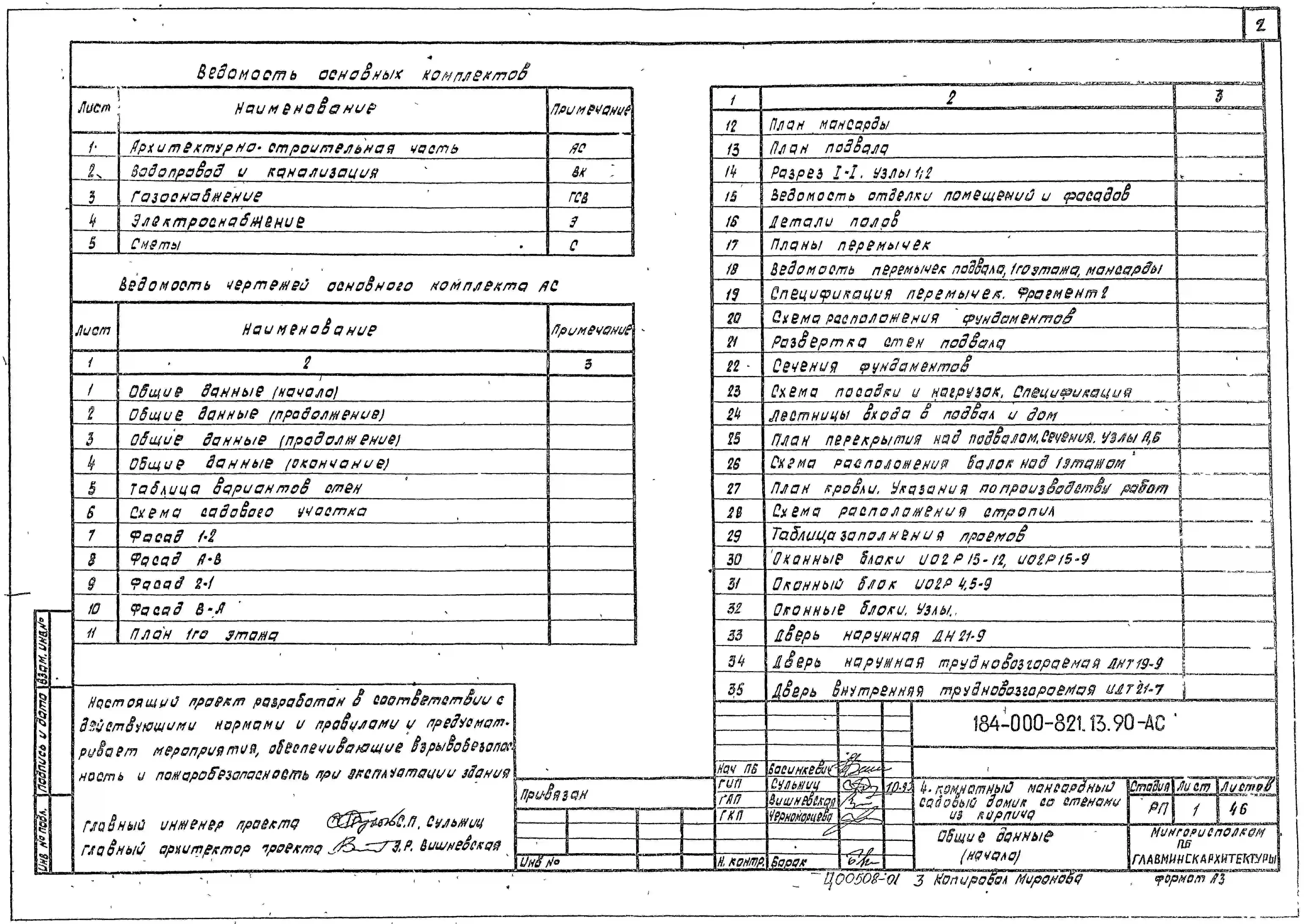 Типовой проект 184-000-821.13.90 4-комнатный мансардный садовый домик со стенами из кирпича (для строительства в Белорусской ССР)