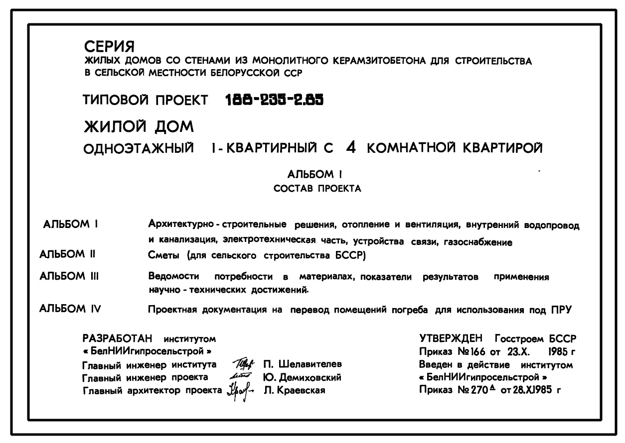 Типовой проект 188-235-2.85 Одноэтажный жилой дом с четырехкомнатной квартирой типа 4Б