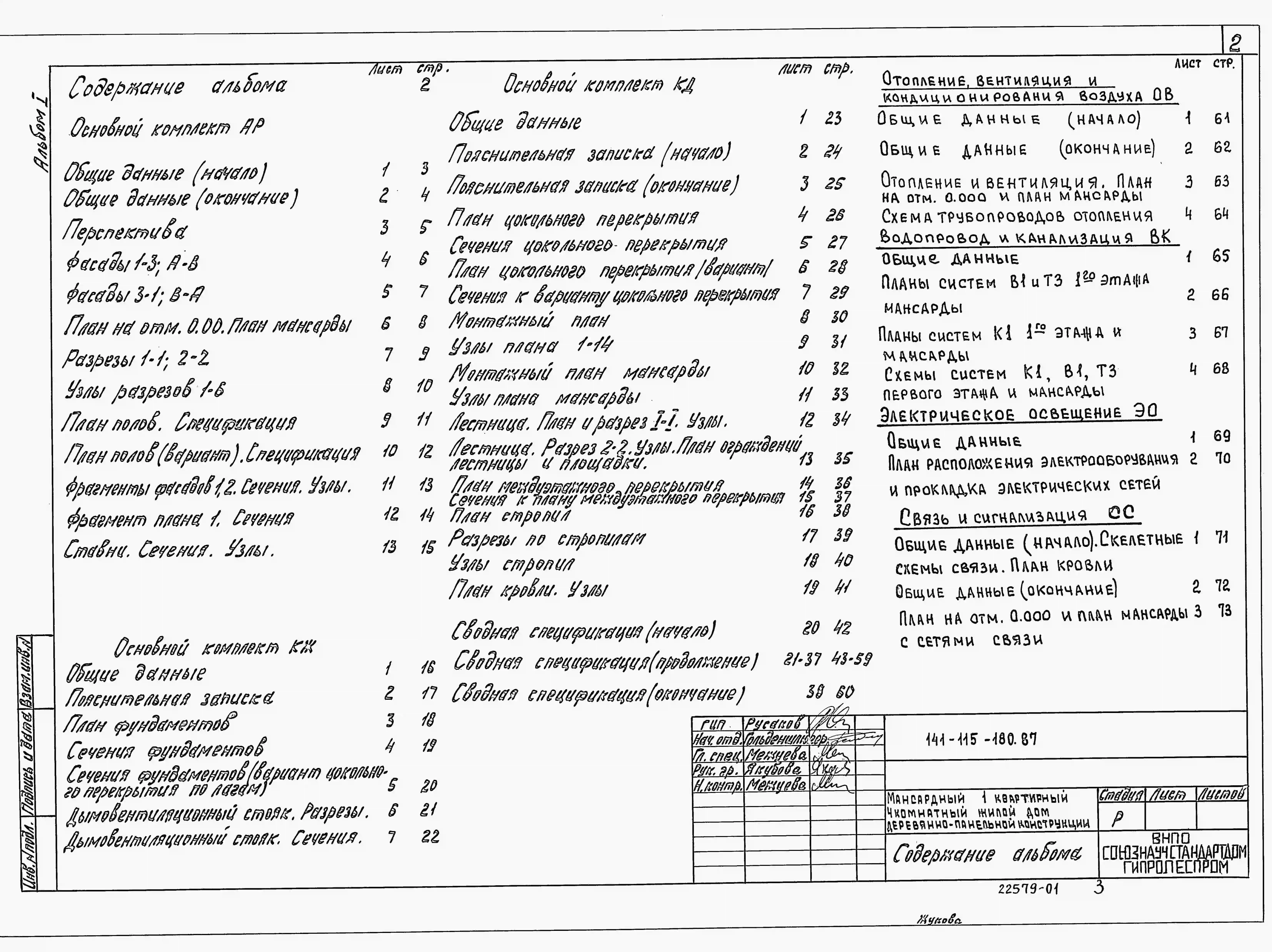 Типовой проект 141-115-180.87 Мансардный одноквартирный 4-комнатный жилой дом деревянно-панельной конструкции