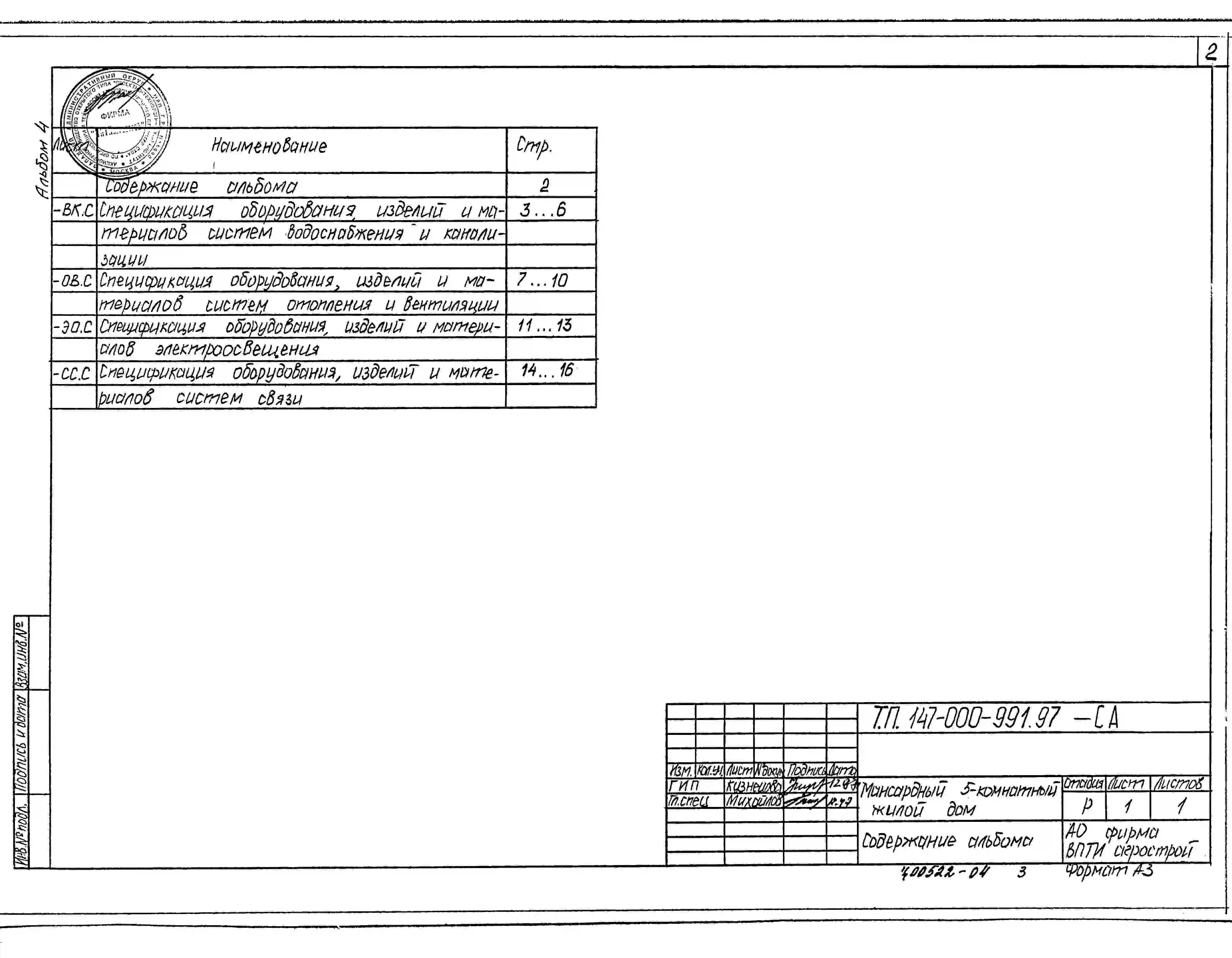 Типовой проект 147-000-991.97 Мансардный пятикомнатный жилой дом