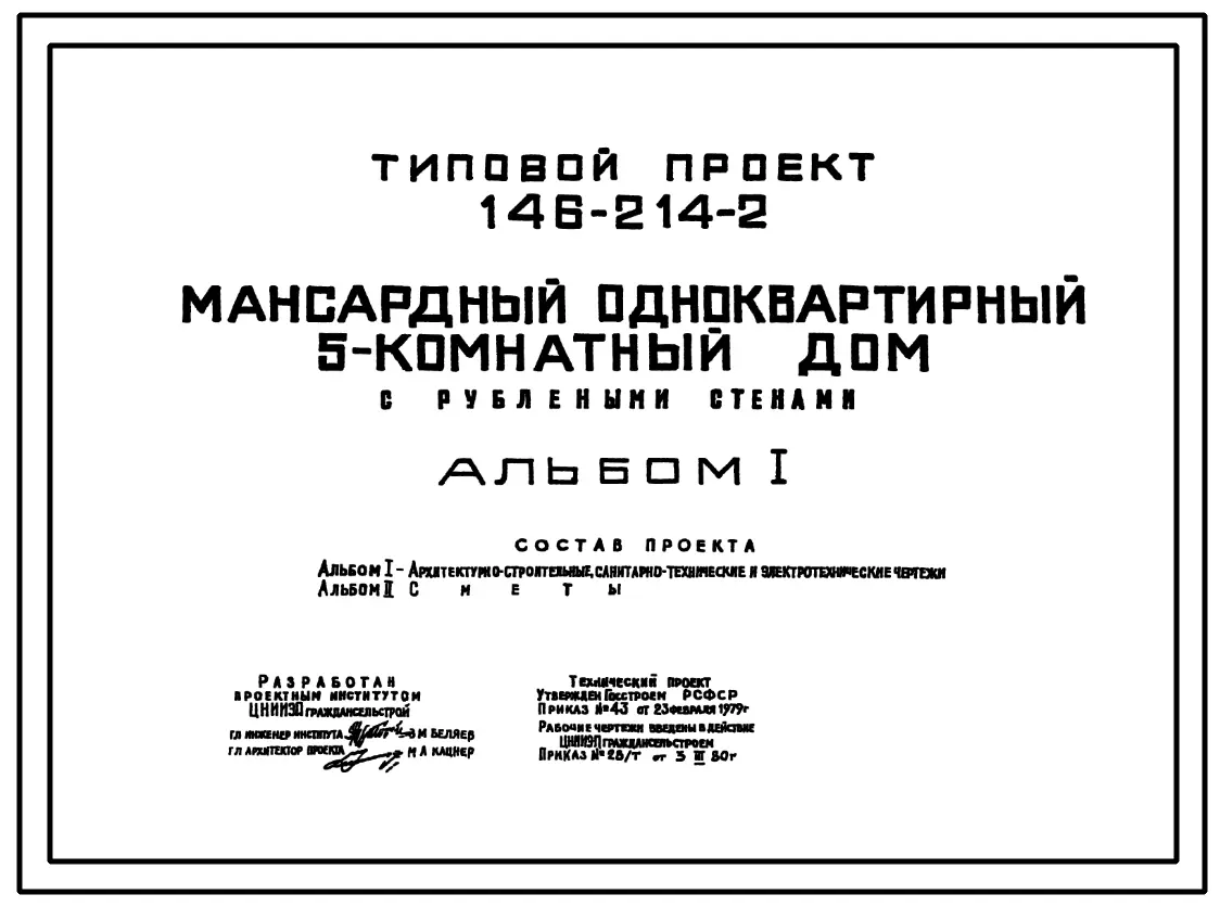Типовой проект 146-214-2 Мансардный одноквартирный 5-комнатный дом (с рублеными стенами)