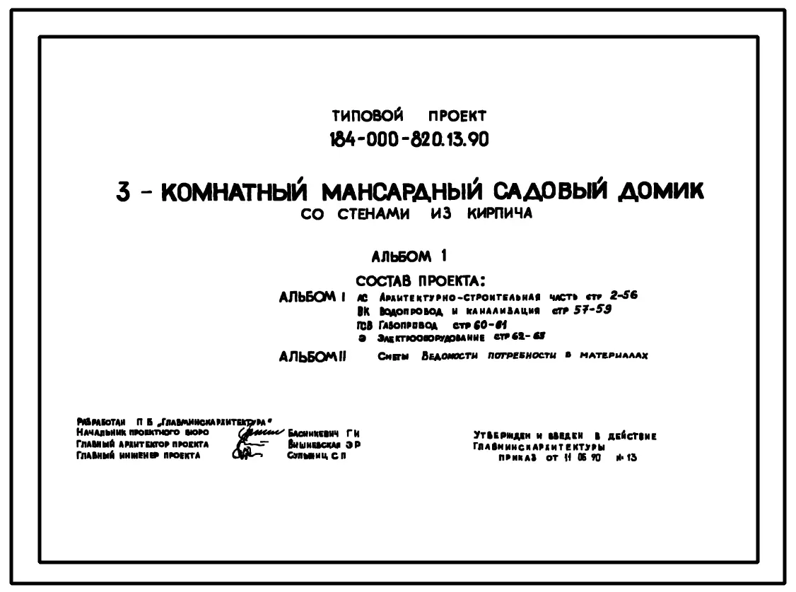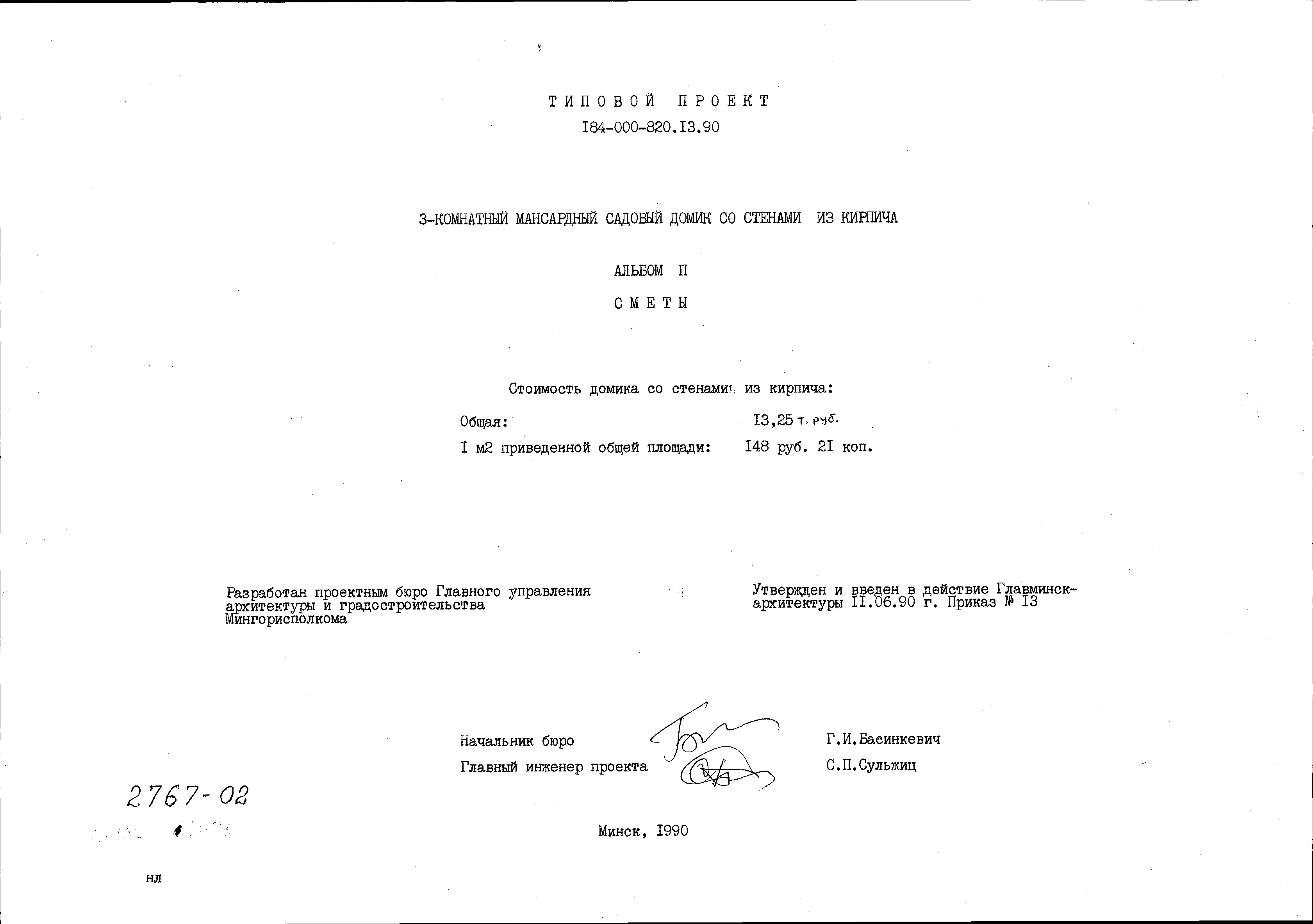 Типовой проект 184-000-820.13.90 3-комнатный мансардный садовый домик со стенами из кирпича (для строительства в Белорусской ССР)