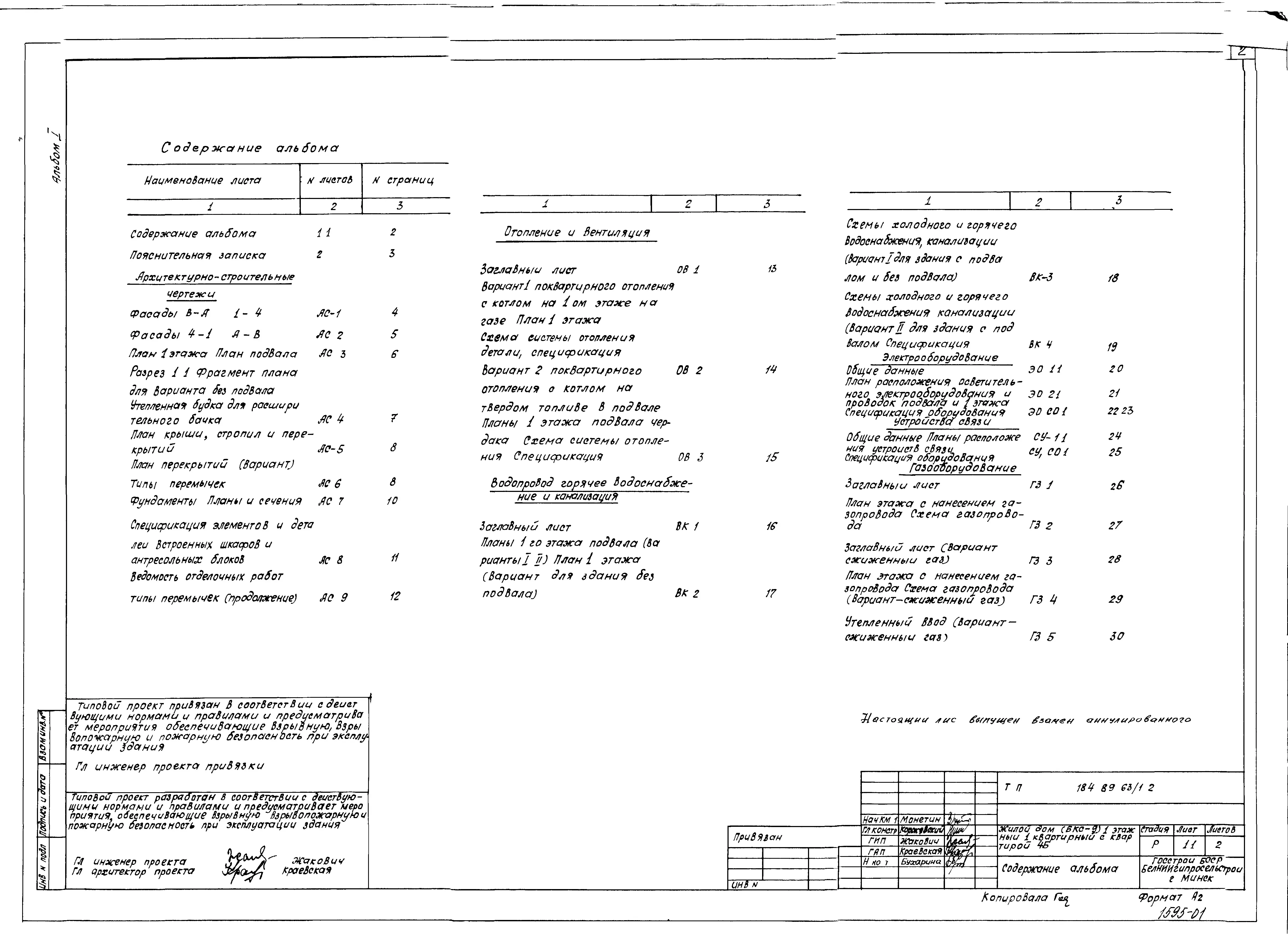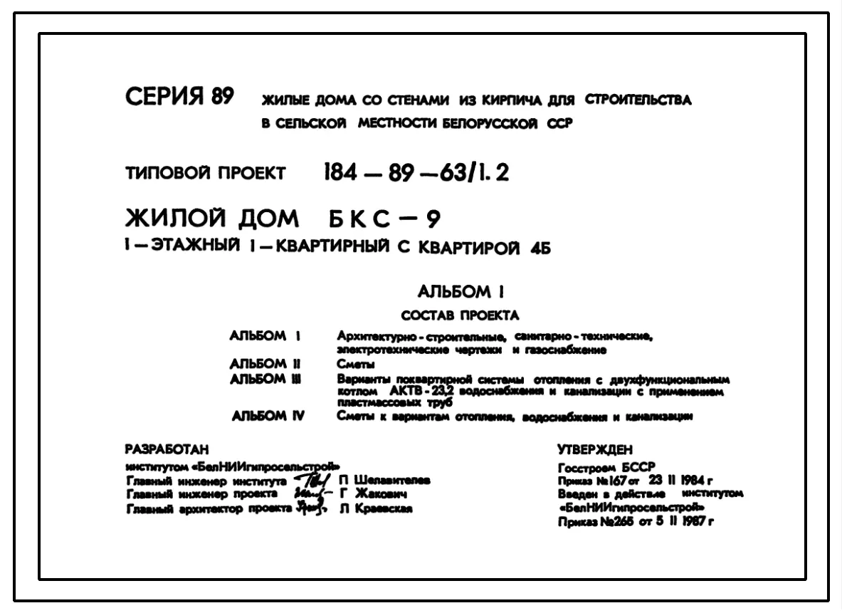 Типовой проект 184-89-63/1.2 Жилой дом (БКС-9) 1-этажный 1-квартирный с квартирой 4Б