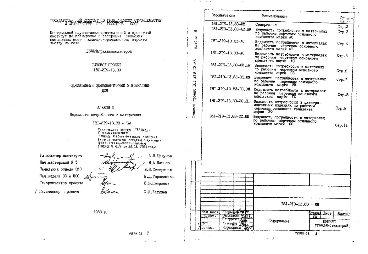 Типовой проект 181-219-13.83 1-этажный 1-квартирный 3-комнатный дом. Для строительства во 2 климатическом районе.