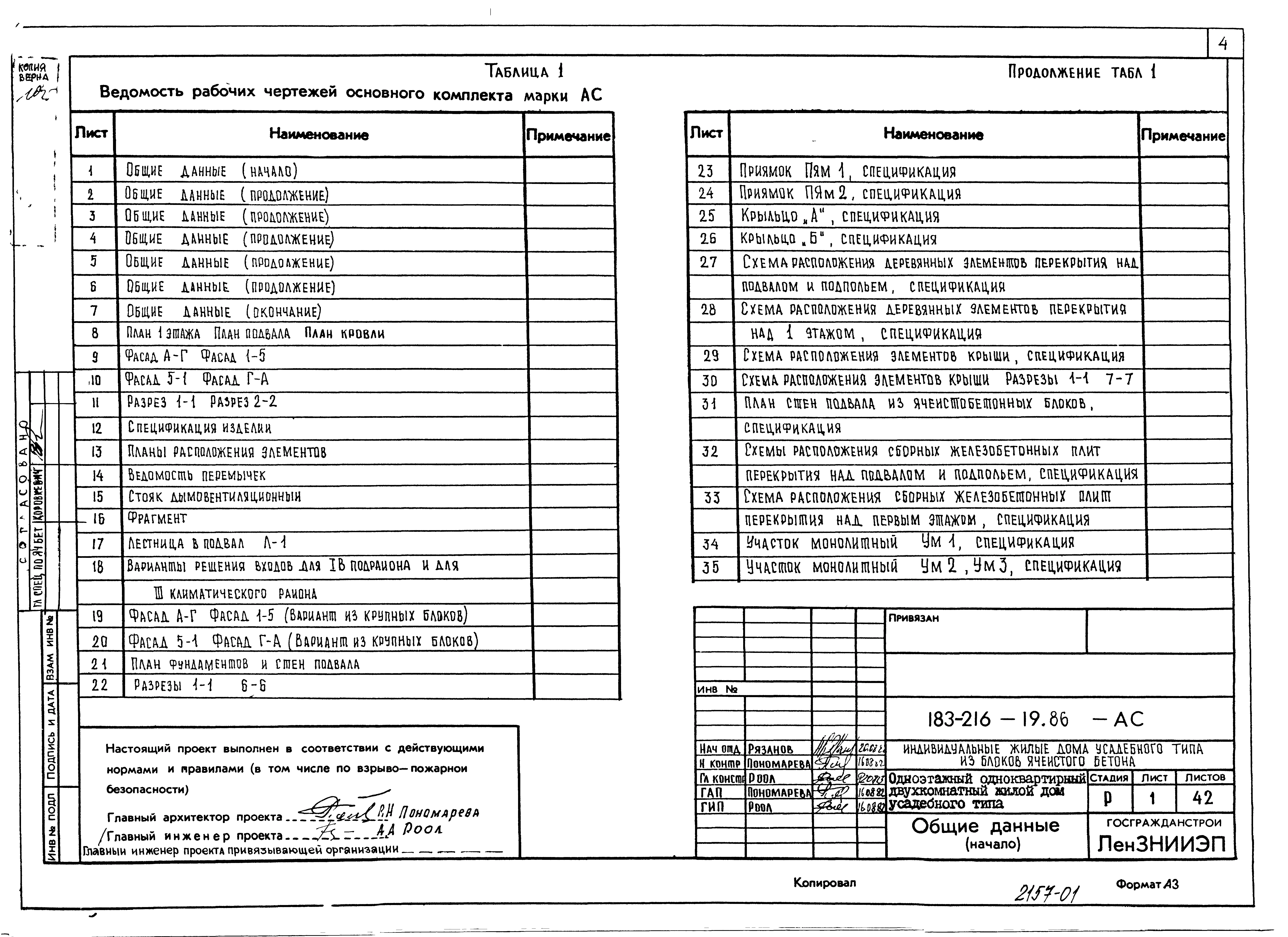 Типовой проект 183-216-19.86 Одноэтажный одноквартирный двухкомнатный жилой дом усадебного типа