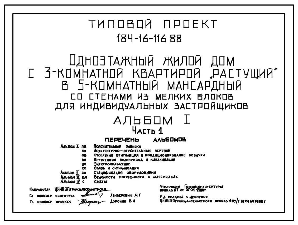 Типовой проект 184-16-116.88 Одноэтажный жилой дом с 3-комнатной квартирой "растущий" в 5-комнатный одноэтажный мансардный со стенами из мелких блоков для индивидуальных застройщиков
