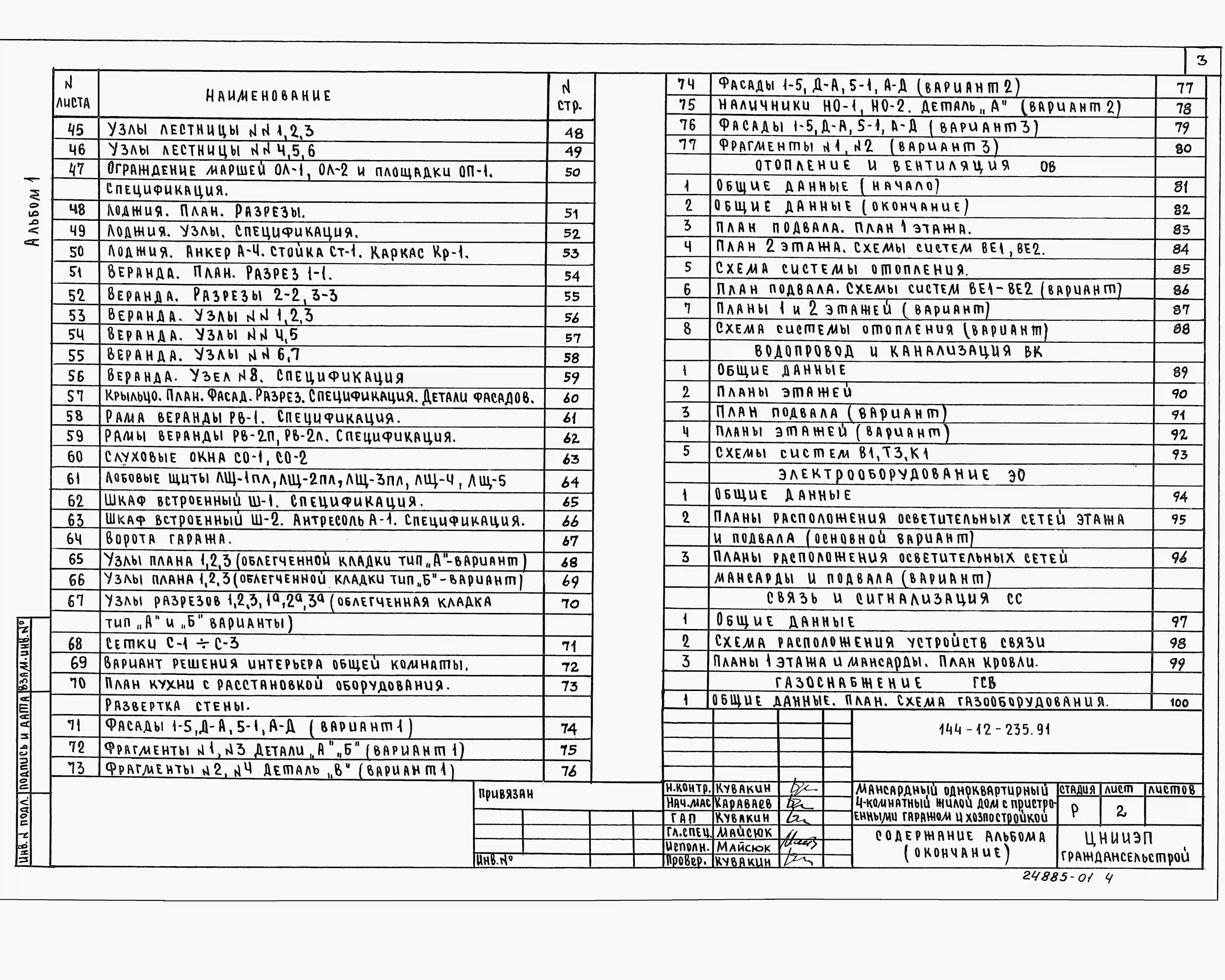 Типовой проект 144-12-235.91 Дом с четырехкомнатной квартирой, с пристроенными гаражом и хозпостройкой. Общая площадь квартиры 127 м2