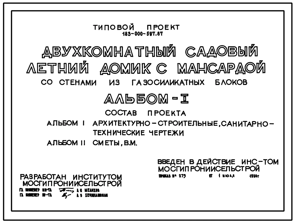 Типовой проект 183-000-597.87 Двухкомнатный садовый летний домик с мансардой. Площадь, м2: общая 23,6, мансарды 15,0, веранды 10,0 . Стены из газосиликатных блоков