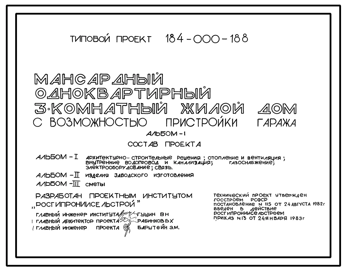 Типовой проект 184-000-188 Мансардный одноквартирный 3-комнатный жилой дом с возможностью пристройки гаража (для индивидуальных застройщиков)