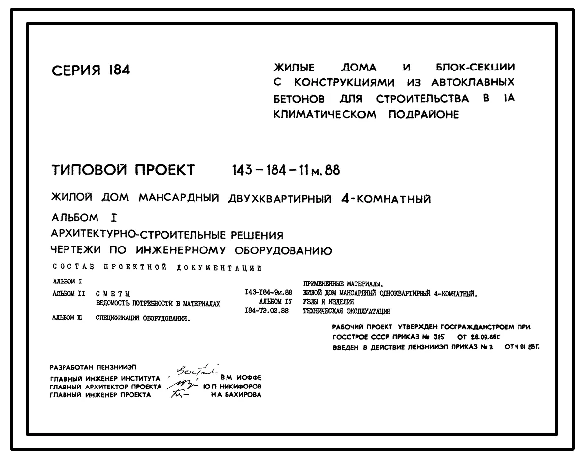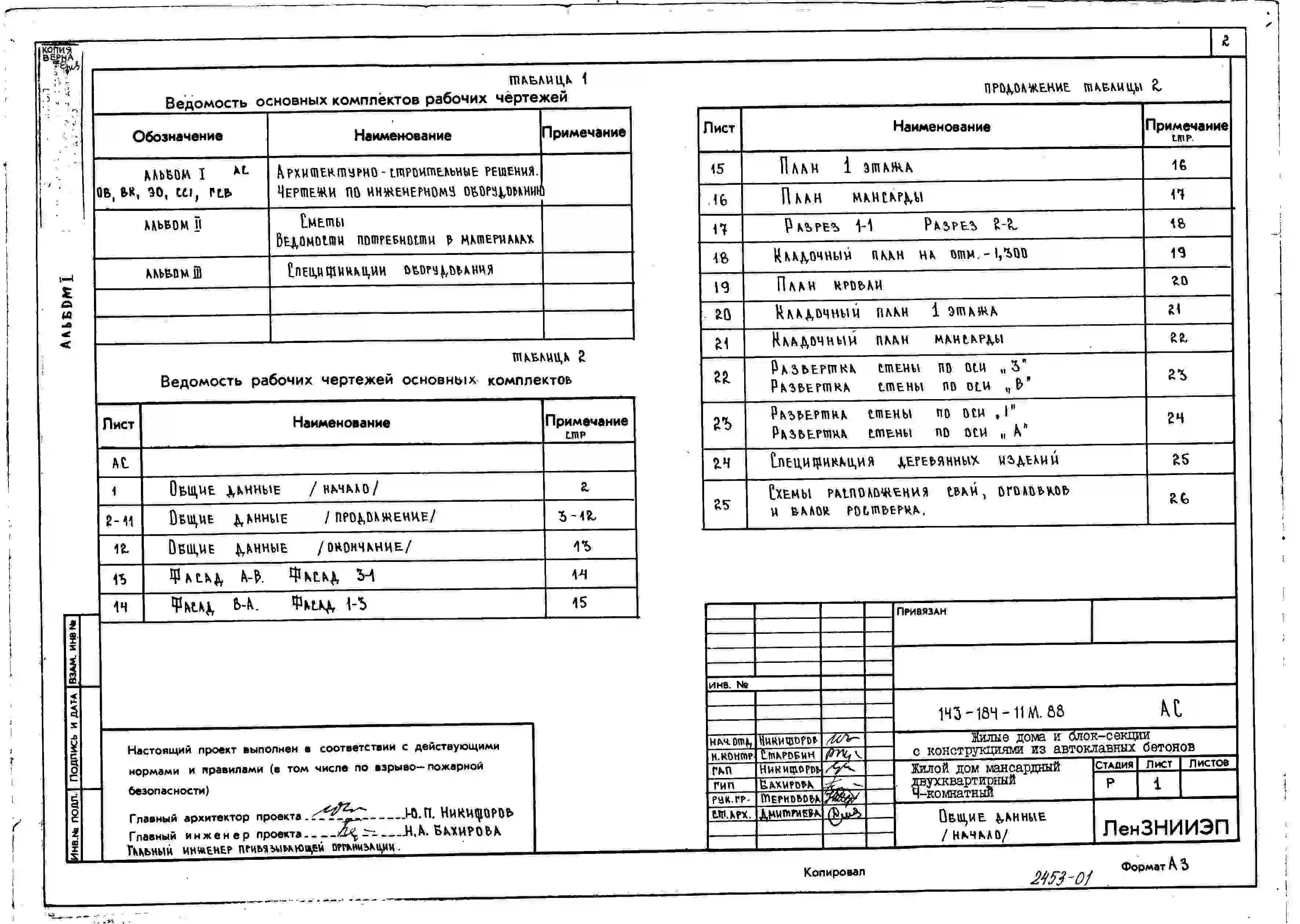Типовой проект 143-184-11м.88 Мансардный дом на две четырехкомнатные квартиры