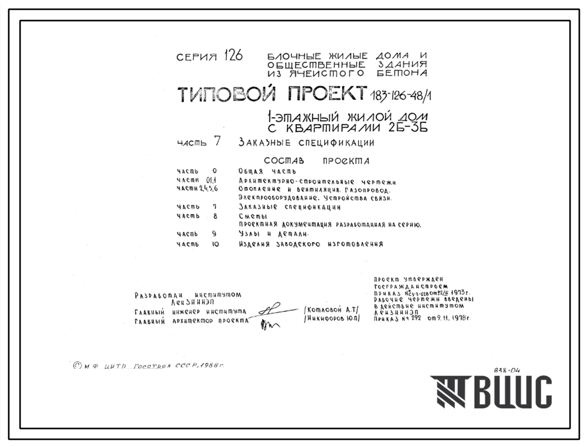ООО "ВЦИС" осуществляет продажу типовых проектов, частей типовых проектов и паспортов проектов физическим и юридическим лицам.