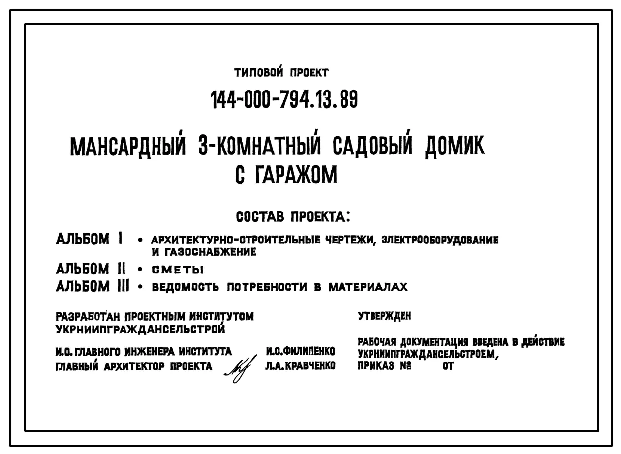 Типовой проект 144-000-794.13.89 Мансардный 3-комнатный садовый домик с гаражом (для строительства в Украинской ССР)