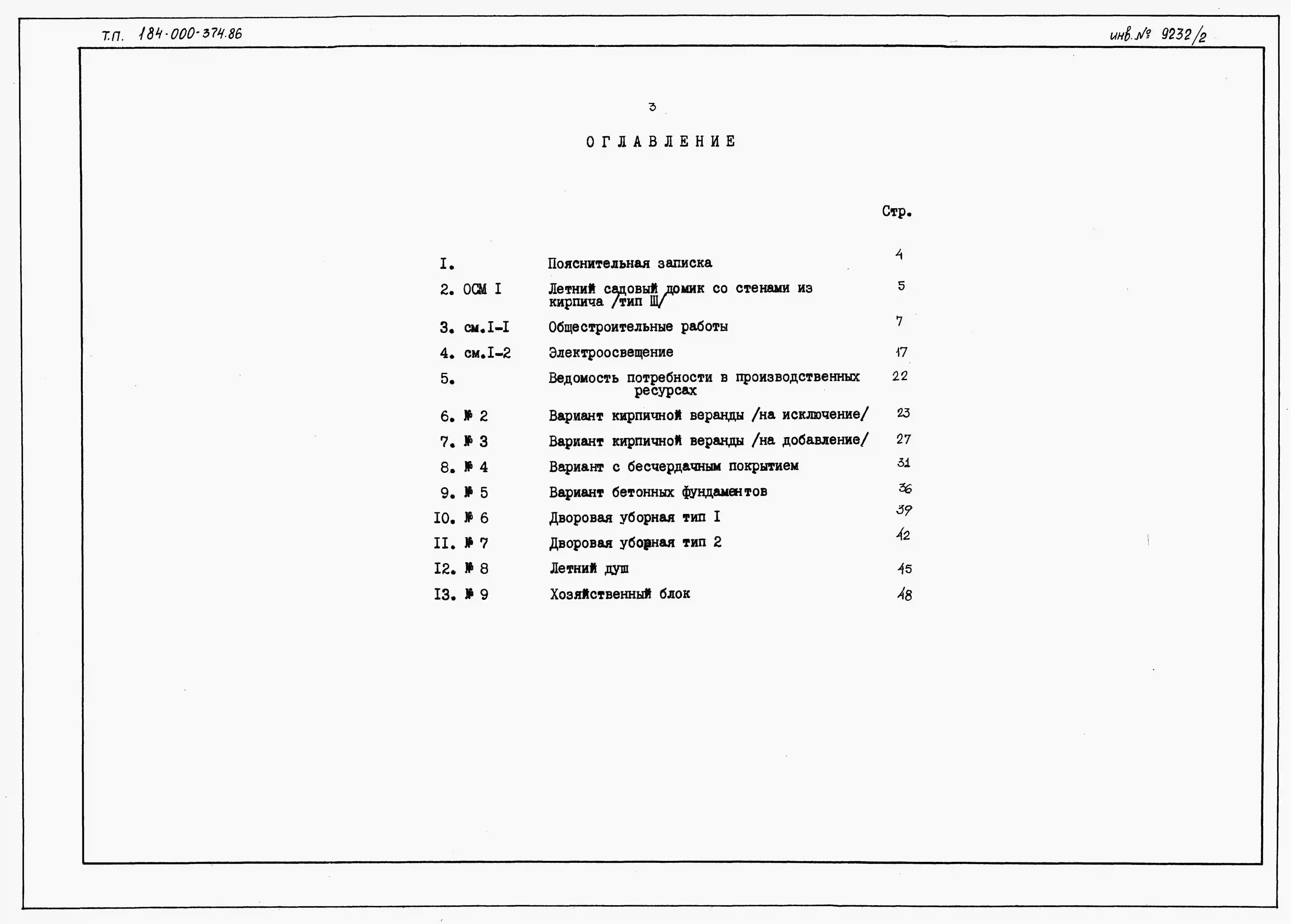 Типовой проект 184-000-374.86 Летний однокомнатный садовый домик (со стенами из кирпича)