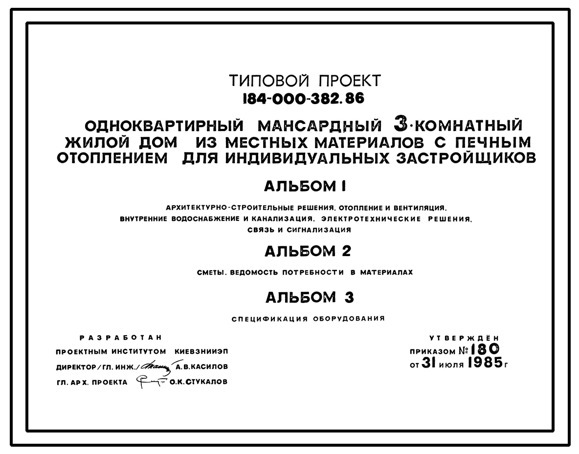 Типовой проект 184-000-382.86 Одноквартирный мансардный трехкомнатный жилой дом из местных материалов с печным отоплением для индивидуальных застройщиков