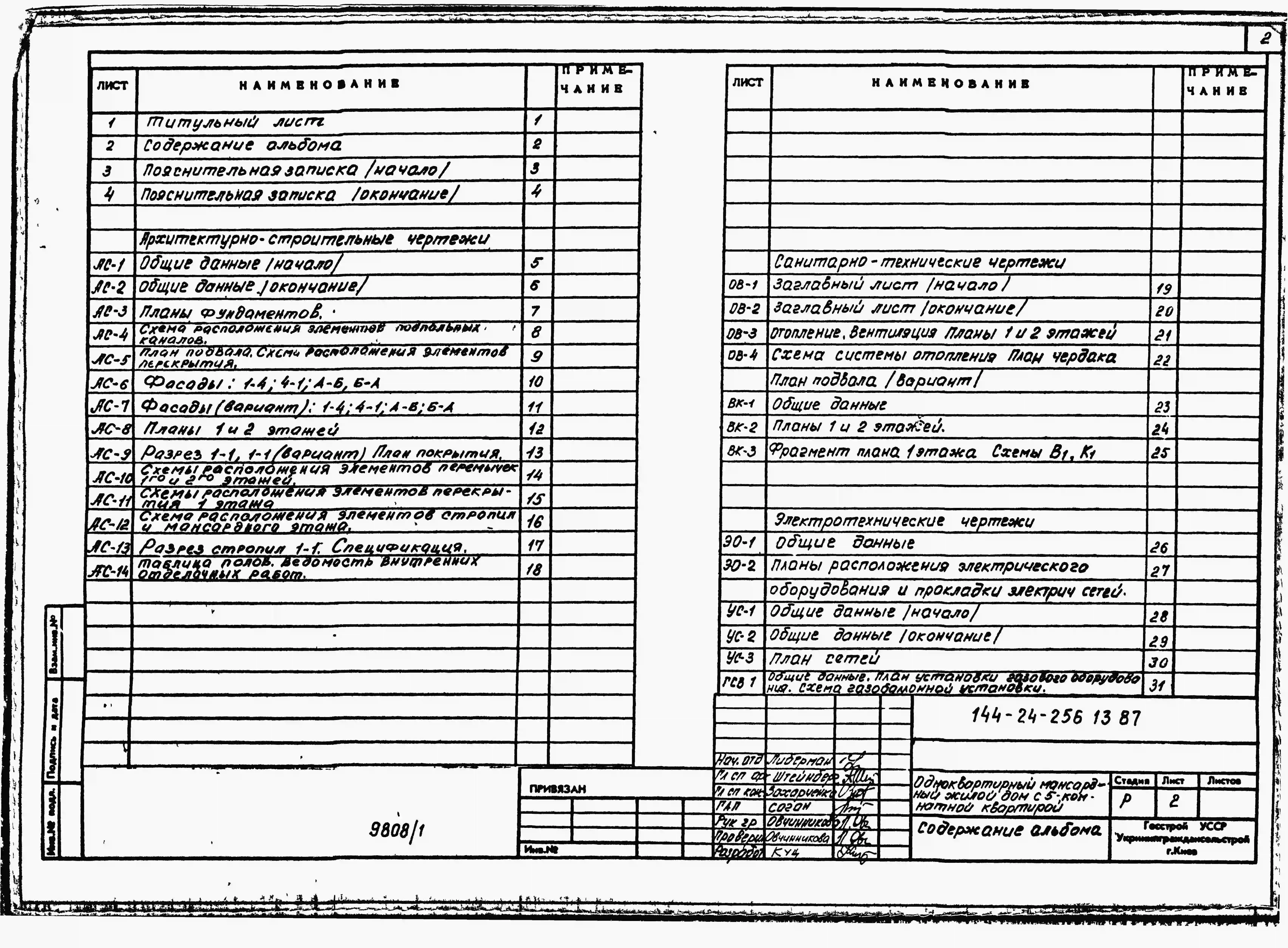 Типовой проект 144-24-256.13.87 Одноквартирный мансардный жилой дом с 5-комнатной квартирой (для индивидуальных застройщиков северо-центральных районов УССР)