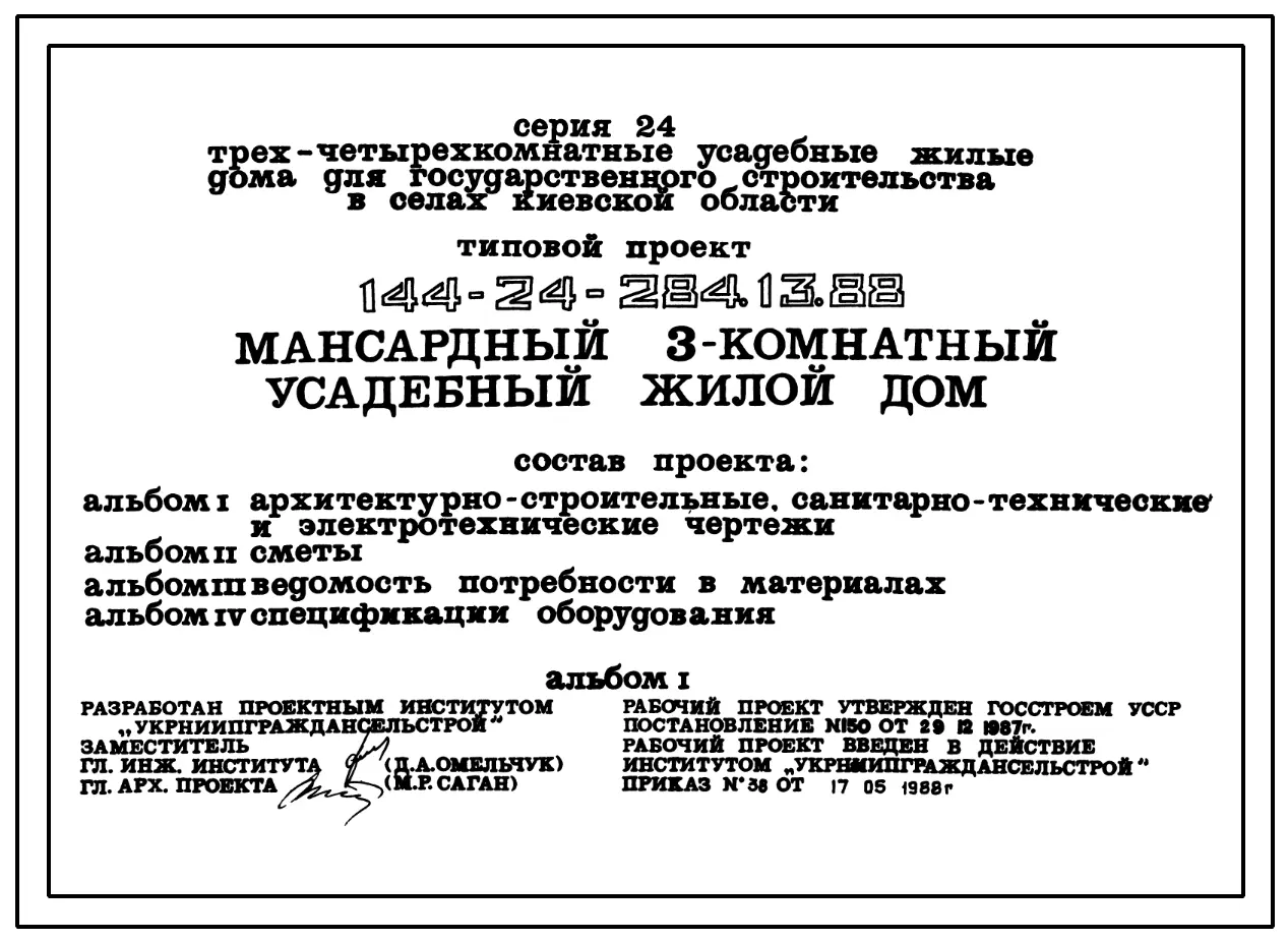 Типовой проект 144-24-284.13.88 Мансардный 3-комнатный усадебный жилой дом (для государственного строительства в селах Киевской области)