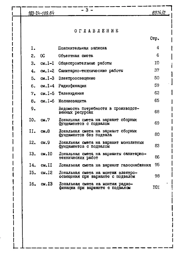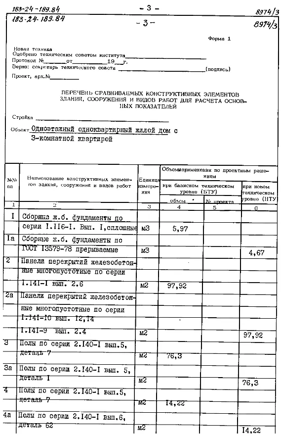 Типовой проект 183-24-189.84 Одноэтажный одноквартирный жилой дом с 3-комнатной квартирой для государственного строительства