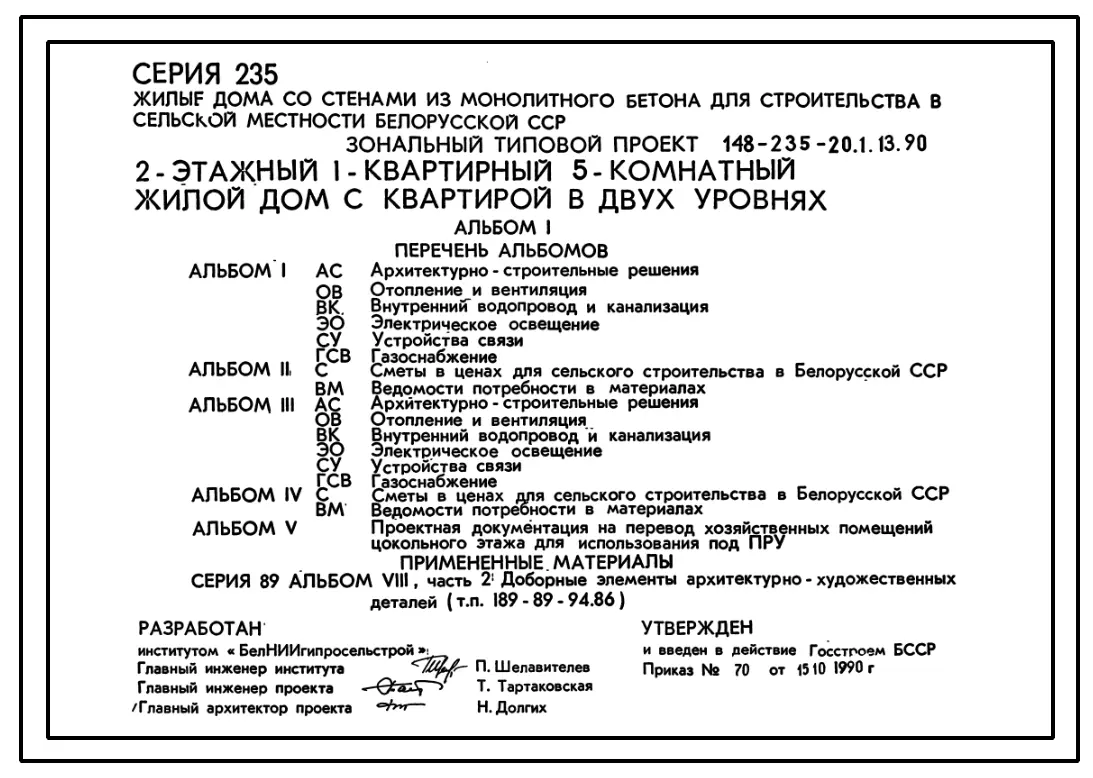 Типовой проект 148-235-20.1.13.90 2-этажный 1-квартирный 5-комнатный жилой дом с квартирой в двух уровнях (для строительства в Белорусской ССР)
