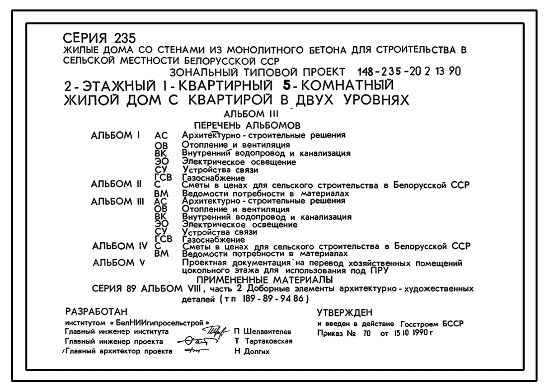 Типовой проект 148-235-20.2.13.90 2-этажный 1-квартирный 5-комнатный жилой дом с квартирой в двух уровнях. Вариант жилого дома с цокольным этажом (для строительства в Белорусской ССР)