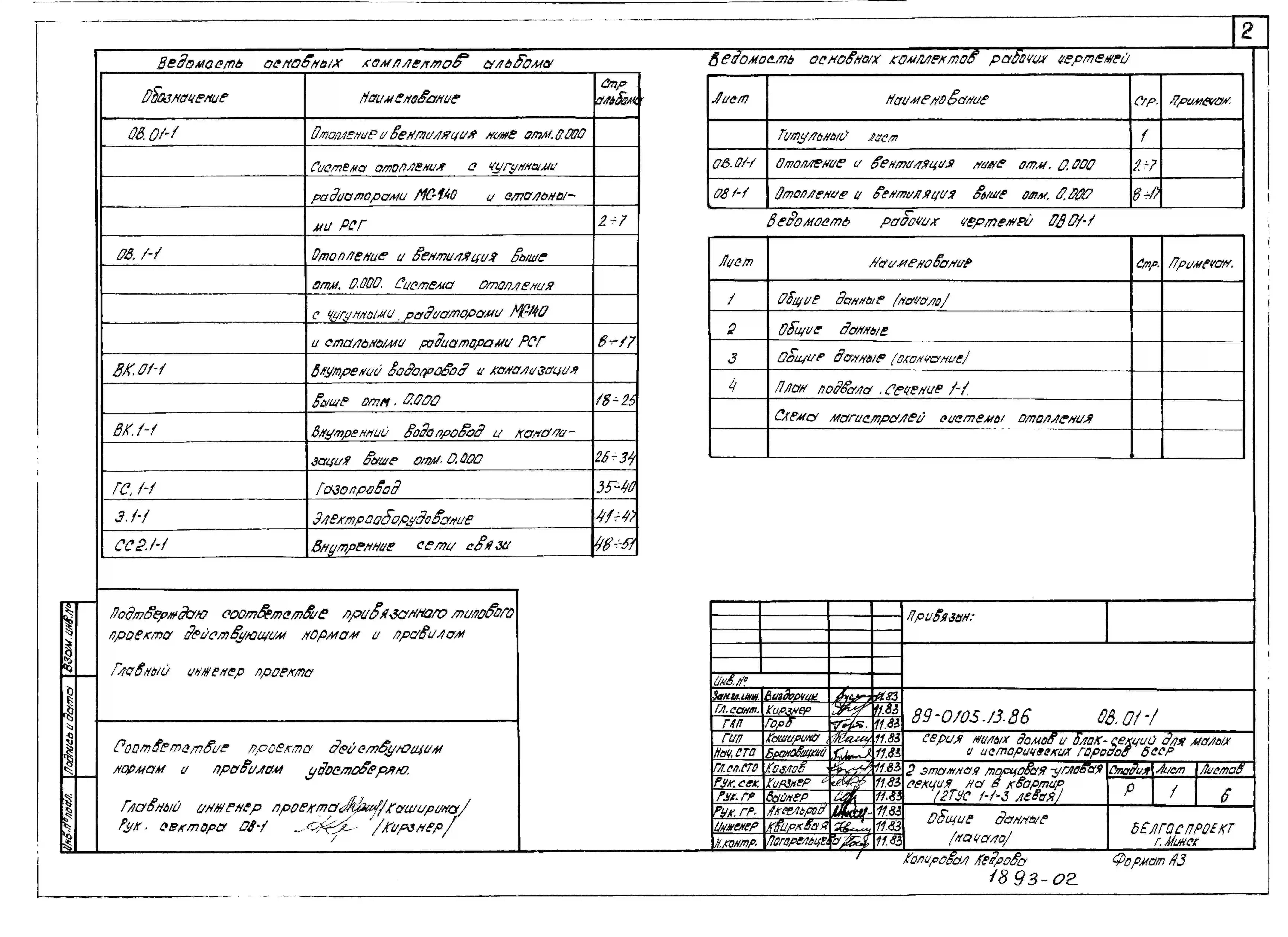 Типовой проект 89-0105.13.86 Двухэтажная торцово-угловая блок-секция на 6 квартир (левая). Для Белорусской ССР
