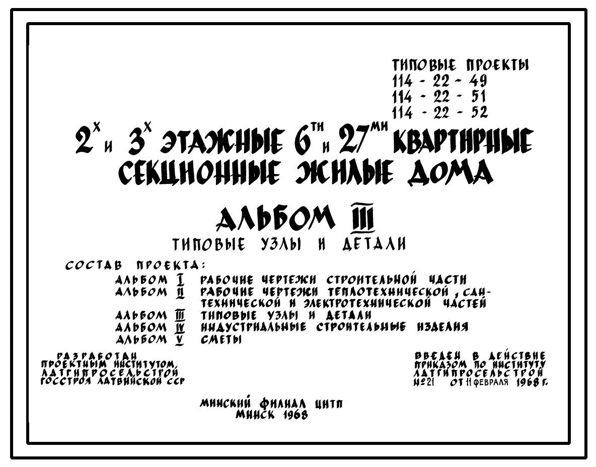 Типовой проект 114-22-49 Двухэтажный шестиквартирный секционный жилой дом (двухкомнатных-4, трехкомнатных-2).