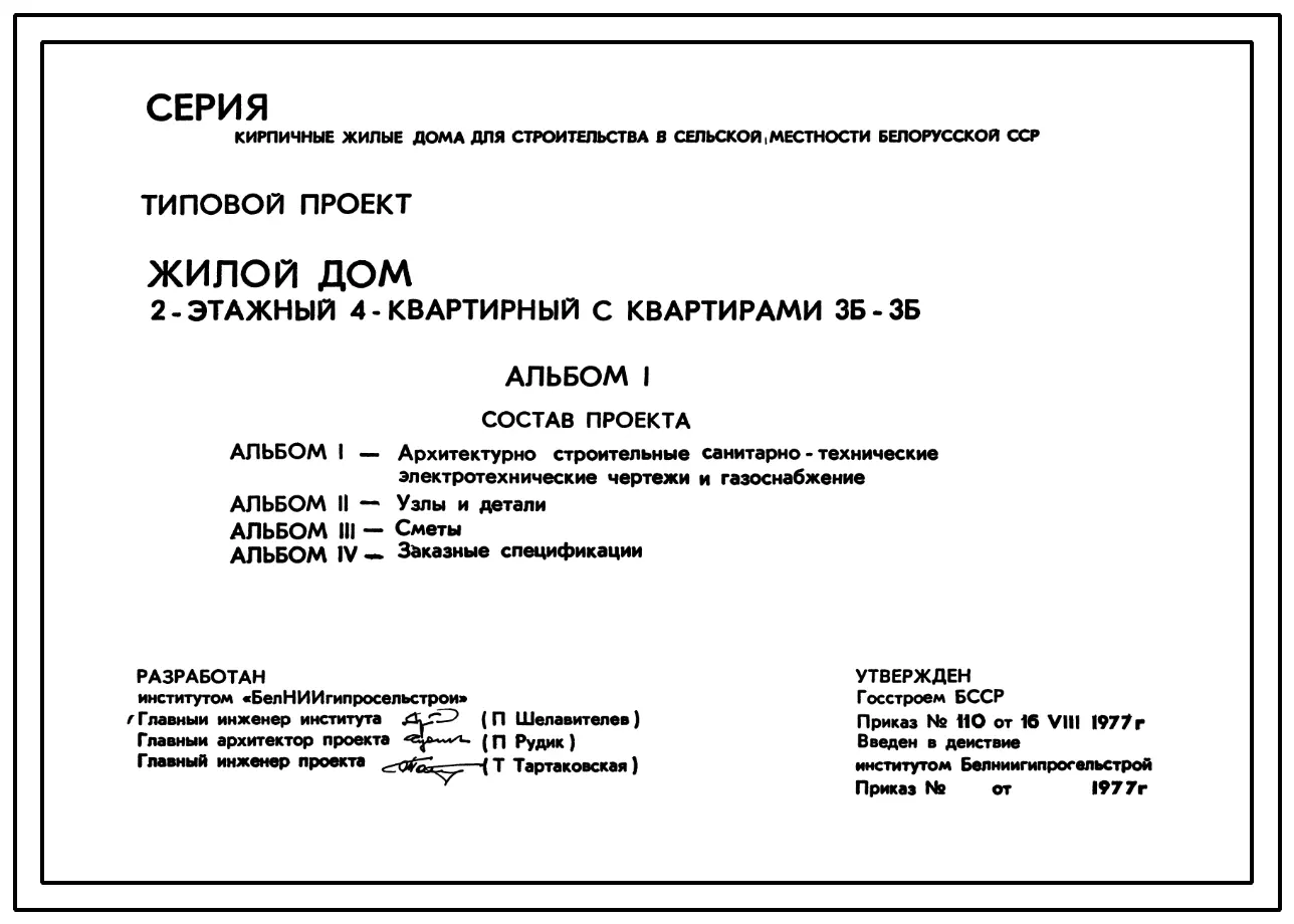 Типовой проект 114-89-36/1 Двухэтажный жилой дом на 4 квартиры типа 3Б. Для строительства во 2В климатическом подрайоне Белорусской ССР
