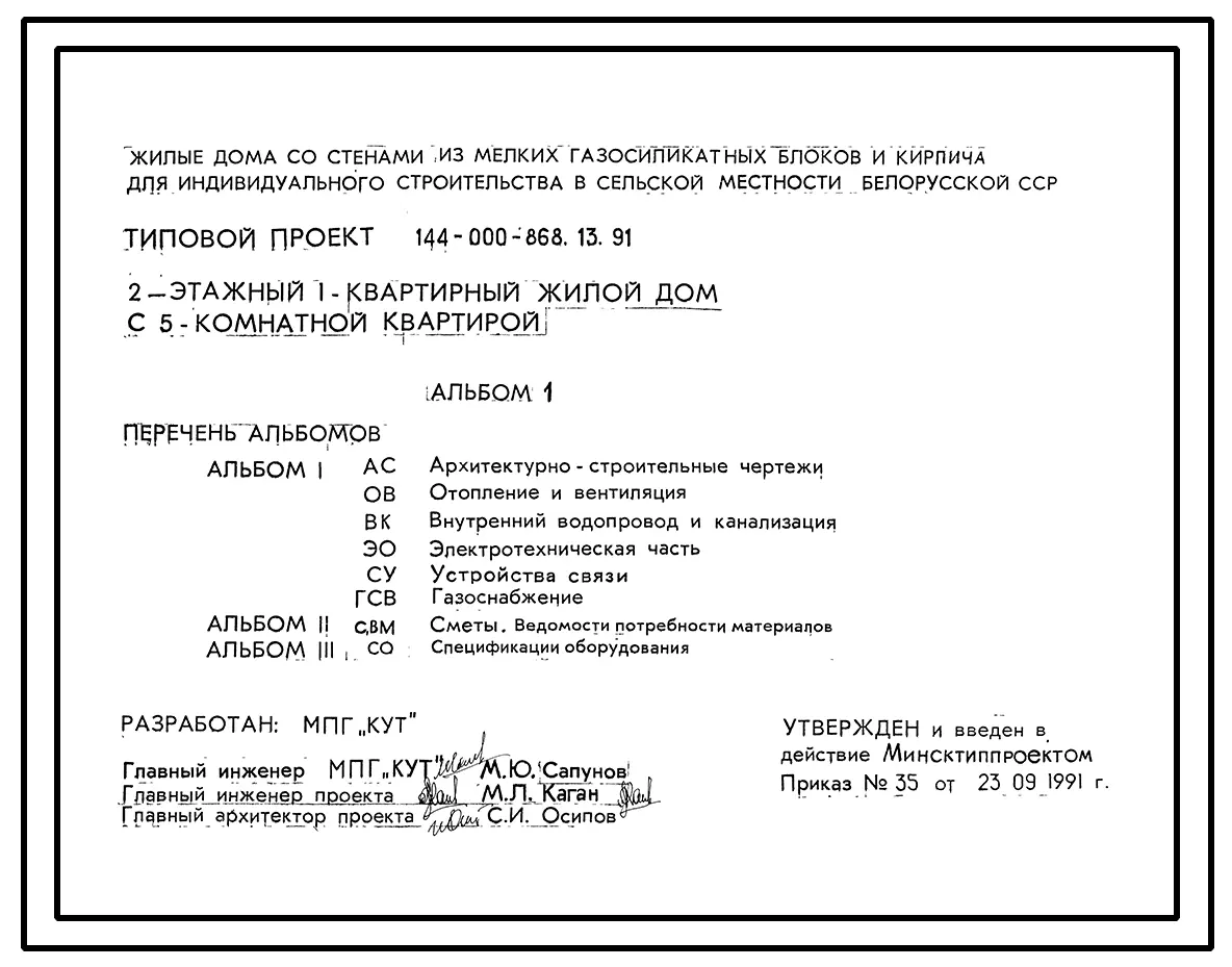 Типовой проект 144-000-868.13.91 Двухэтажный одноквартирный жилой дом с пятикомнатной квартирой