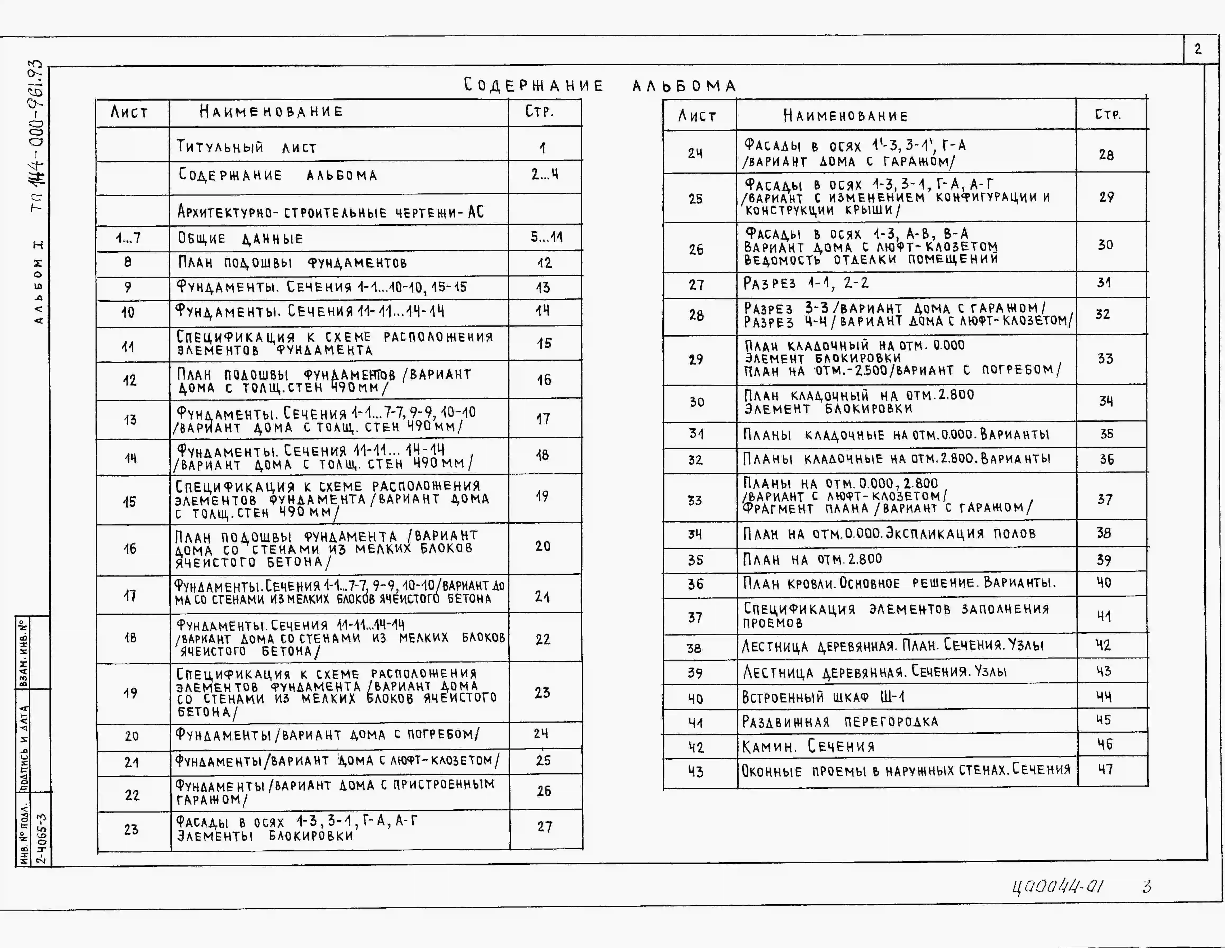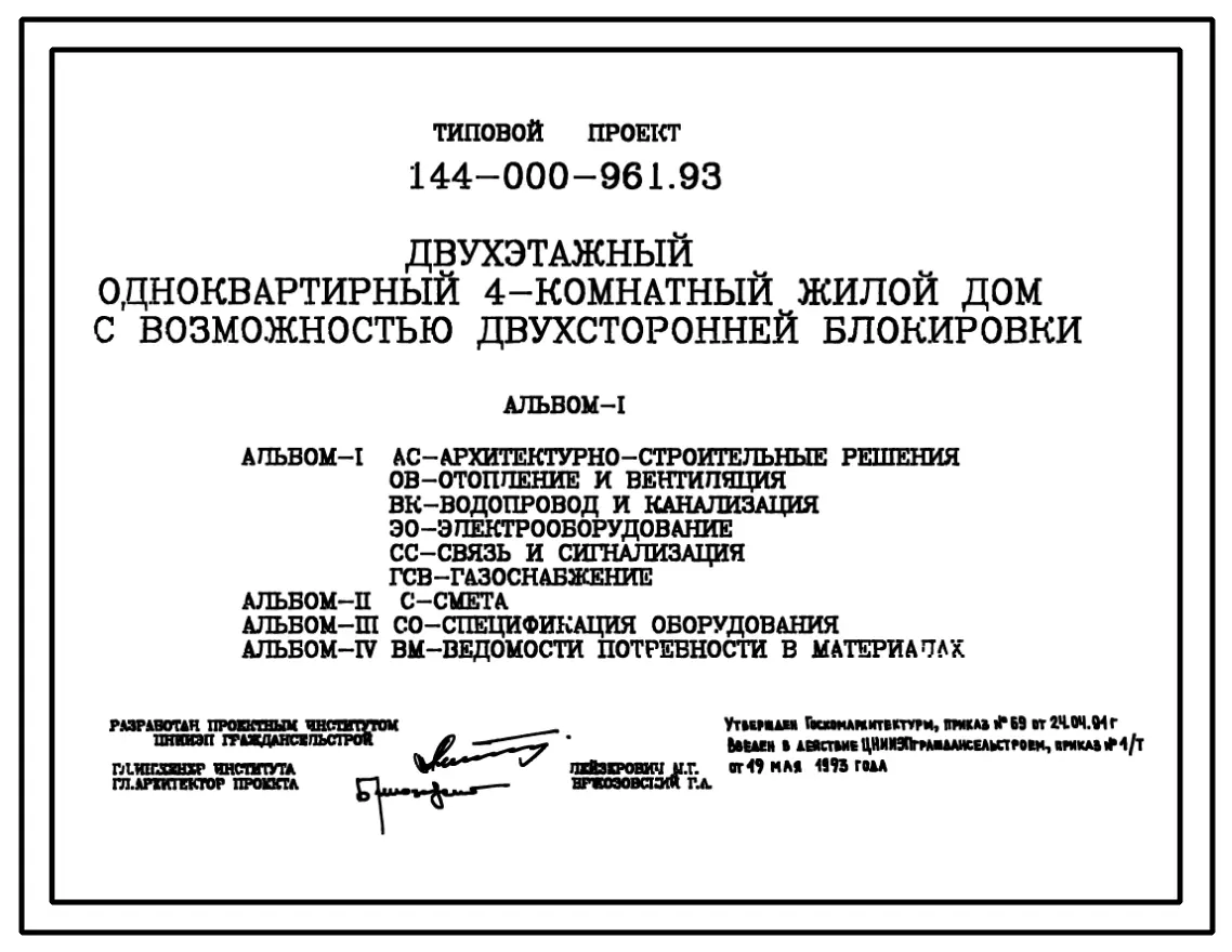Типовой проект 144-000-961.93 Дом с четырехкомнатной квартирой с возможностью двухсторонней блокировки. Разработаны варианты: с гаражом, с погребом, с люфт-клозетом. Общая площадь квартиры 130 м2 (СТЕНЫ ИЗ БЕТОННЫХ КАМНЕЙ, Перекрытия железобетонные (вариа
